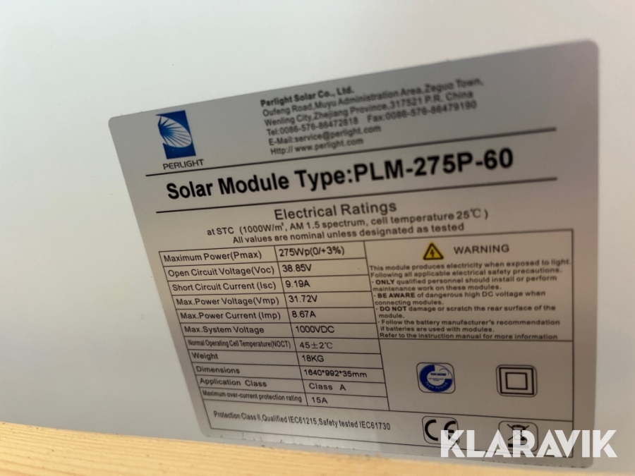 Solcellspaneler Solar Module PLM-275P-60 6st