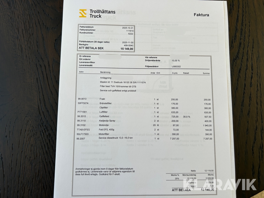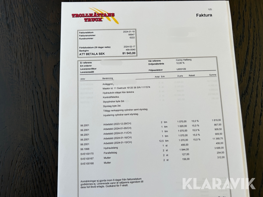 Boka frakt? Det finns ingen specifik information om frakt för just det här objektet, men om du skickar oss en förfrågan via vårt fraktformulär, så undersöker vi möjligheten. Paket, EU-pall eller större maskin? Klaravik har fraktavtal med Schenker och i de fall vi kan hjälpa till med frakt gäller det objekt som ryms i paket eller inom en EU-pall (upp till 120*80 cm och 990 kg). Det går att beställa frakt inom Sverige, dock inte till utlandet. Vid frakt på större maskiner rekommenderar vi gärna transportföretag som du kan kontakta.