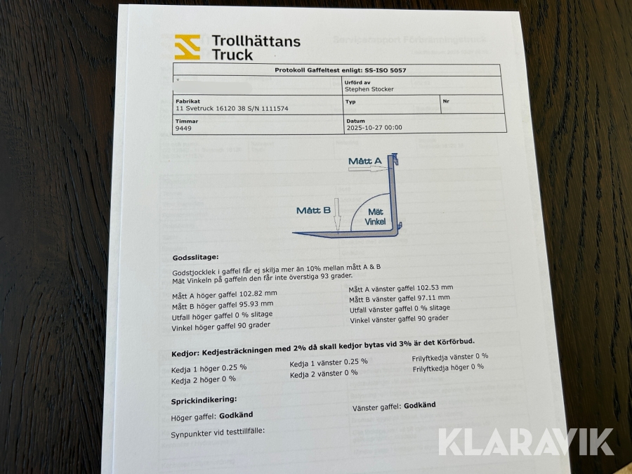 • Serie/chassinummer framgår