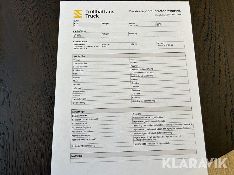Du som köpare är skyldig att kontrollera objektet vid hämtning. Skiljer sig något avsevärt jämfört med informationen på klaravik.se? Kontakta då Klaravik innan du tar objektet från platsen. Läs fullständiga köpvillkor.