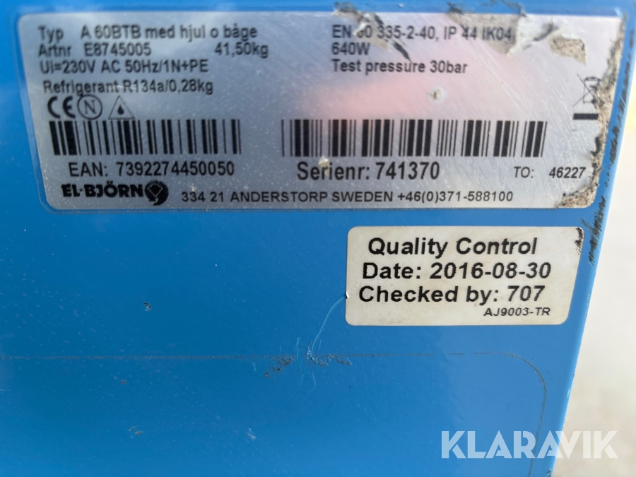 Boka frakt? Det finns ingen specifik information om frakt för just det här objektet, men om du skickar oss en förfrågan via vårt fraktformulär, så undersöker vi möjligheten. Paket, EU-pall eller större maskin? Klaravik har fraktavtal med Schenker och i de fall vi kan hjälpa till med frakt gäller det objekt som ryms i paket eller inom en EU-pall (upp till 120*80 cm och 990 kg). Det går att beställa frakt inom Sverige, dock inte till utlandet. Vid frakt på större maskiner rekommenderar vi gärna transportföretag som du kan kontakta.