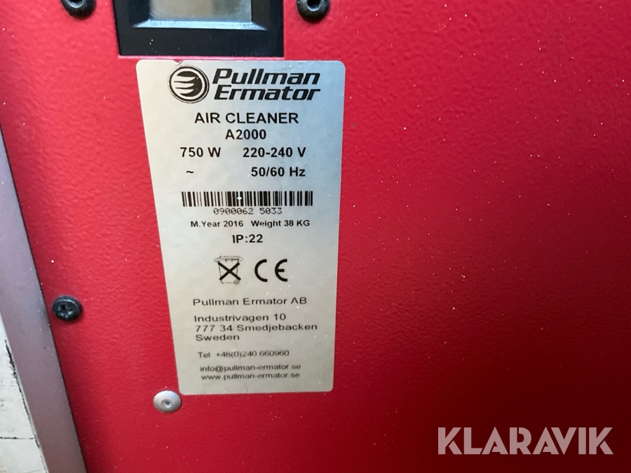 Luftrenare Pullman Ermator A2000, A600 3st
