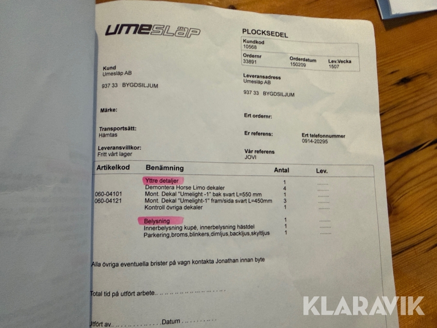 Du som köpare är skyldig att kontrollera objektet vid hämtning. Skiljer sig något avsevärt jämfört med informationen på klaravik.se? Kontakta då Klaravik innan du tar objektet från platsen. Läs fullständiga köpvillkor.