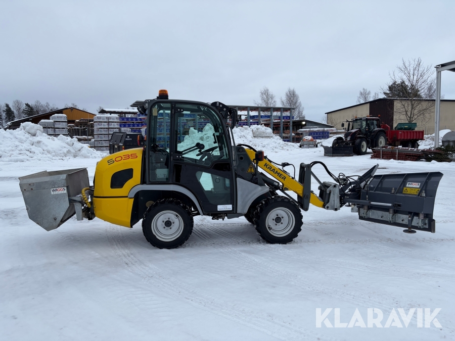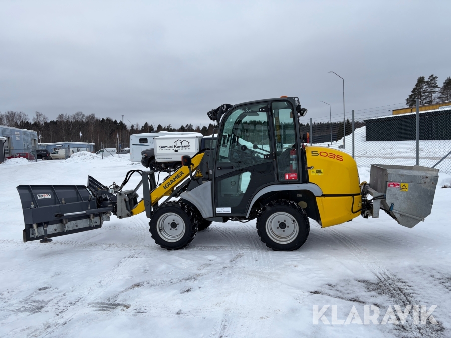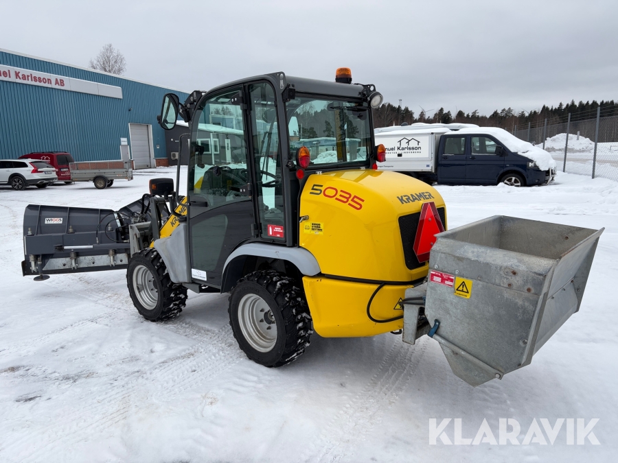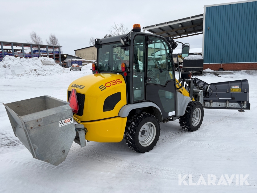 Hjullastare Kramer 5035 med vikplog, sandspridare, 2 st skopor samt pallgafflar