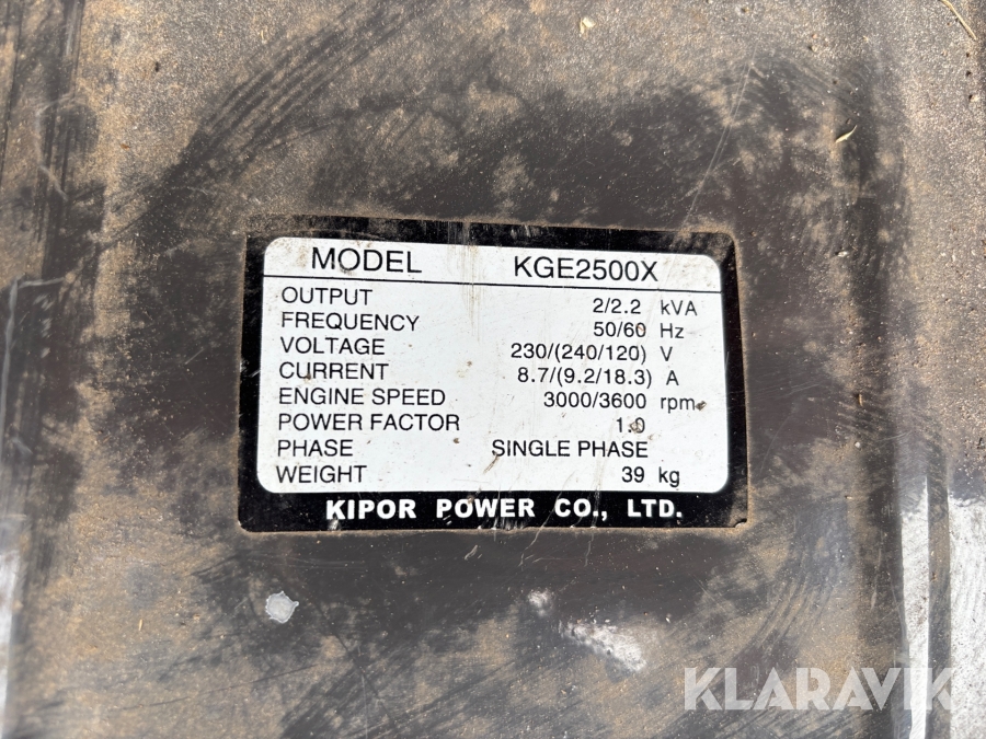 Elverk Kipor KGE2500x