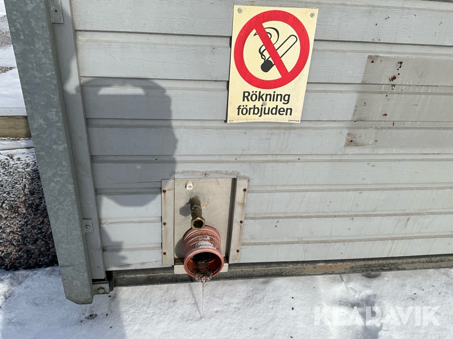 For sheds and containers (10 feet and larger), loading assistance can be purchased. Payment is made either by invoice or by card at the seller's location. The cost per lift is SEK 500 + VAT.