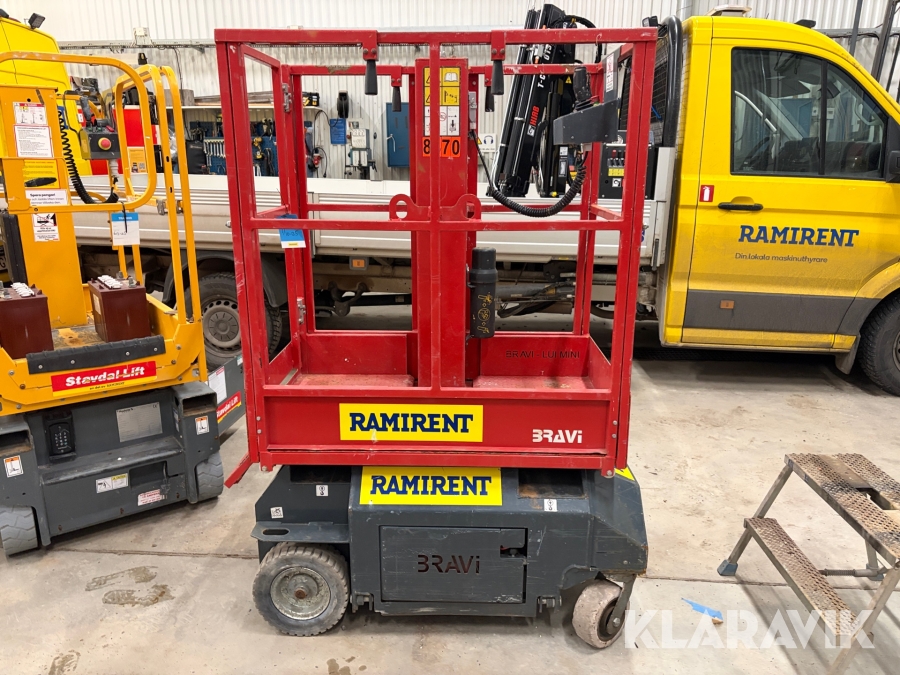 BRAVIISOL Leonardo HD är en kompakt och eldriven pelarlift som lämpar sig utmärkt för arbete på höjd i trånga utrymmen. Med en arbetshöjd på upp till 4,9 meter och en smal, lätt konstruktion kan den enkelt köras genom dörrar och in i hissar utan att operatören behöver kliva av. Liften är designad för att ersätta stegar och ställningar och erbjuder både säkerhet och effektivitet, särskilt vid montage- och servicearbeten inomhus. Robust stålkonstruktion, hög manövrerbarhet och låga underhållskrav gör Leonardo HD till ett smart val för arbetsplatser med begränsat utrymme.