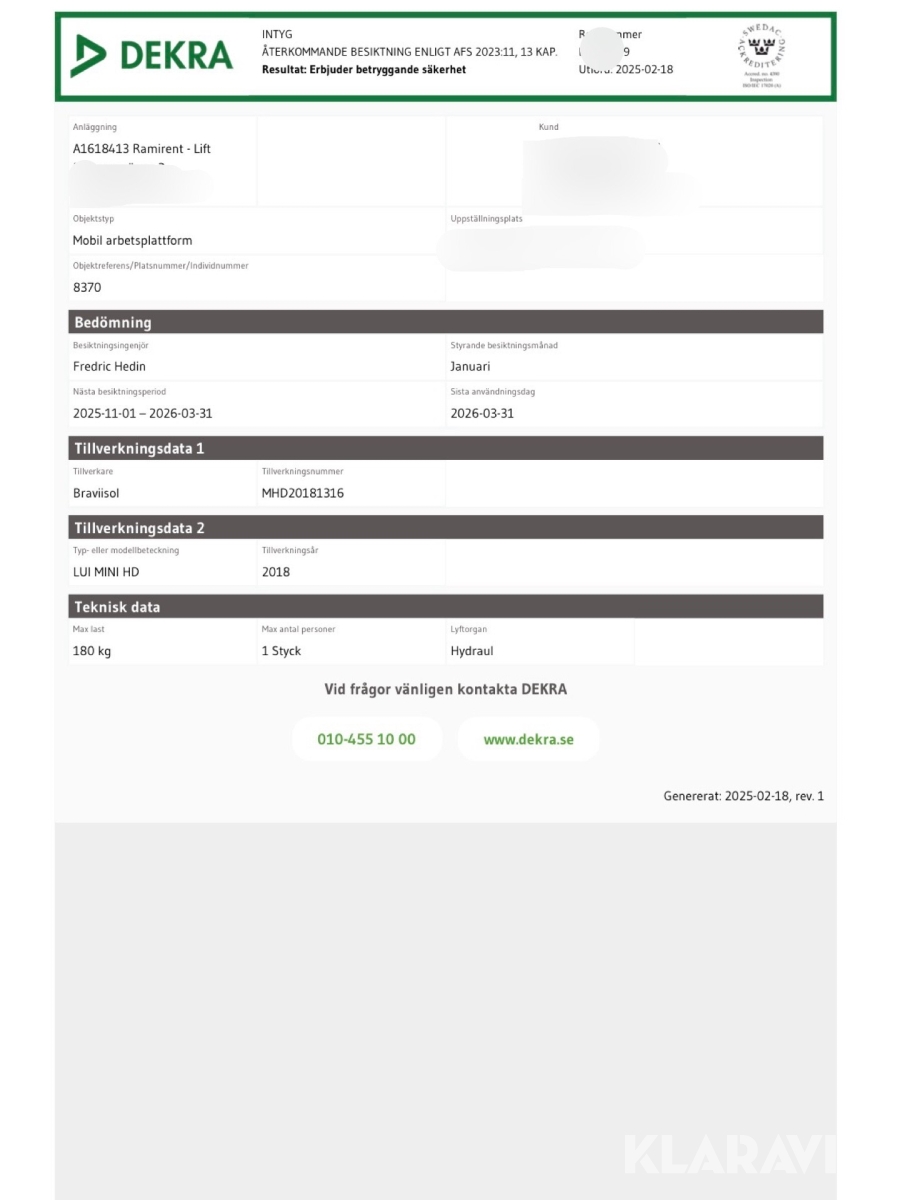 Läs om metodikenPga platsbrist är det viktigt att du som köpare hämtar inom 12 dagar från auktionsavslut. Vid frågor om frakt kontakta trade@ramirent.se.