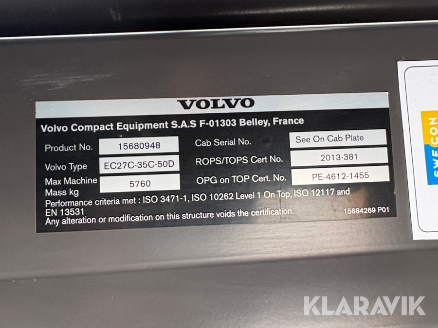 Grävmaskin Volvo ECR50D med skopor