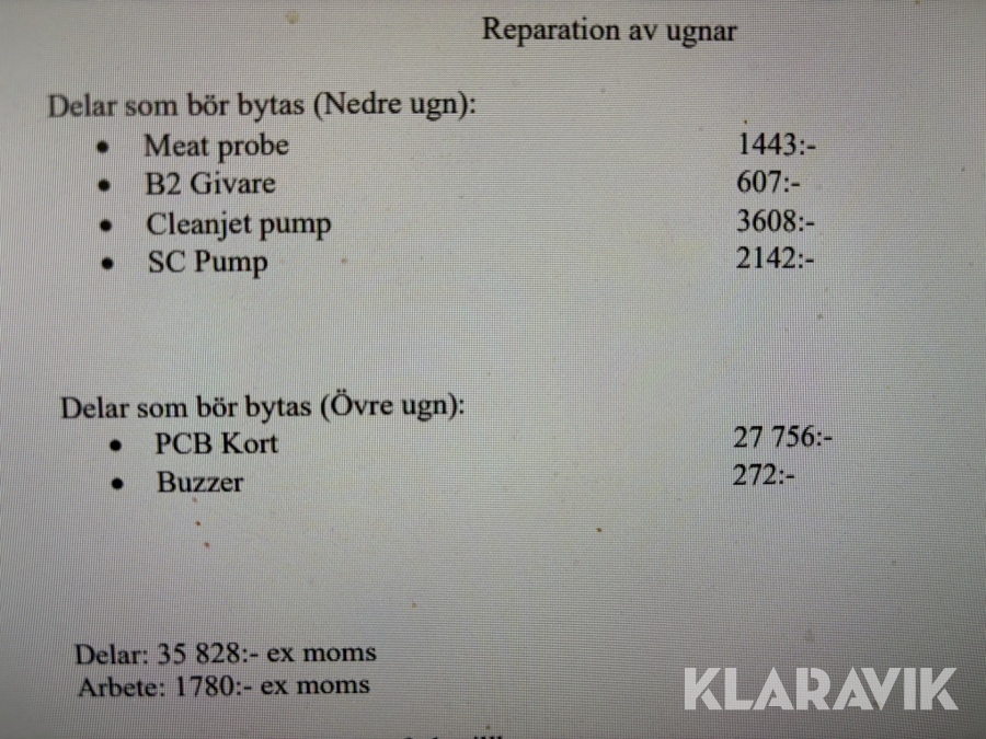 Boka frakt? Det finns ingen specifik information om frakt för just det här objektet, men om du skickar oss en förfrågan via vårt fraktformulär, så undersöker vi möjligheten. Paket, EU-pall eller större maskin? Klaravik har fraktavtal med Schenker och i de fall vi kan hjälpa till med frakt gäller det objekt som ryms i paket eller inom en EU-pall (upp till 120*80 cm och 990 kg). Det går att beställa frakt inom Sverige, dock inte till utlandet. Vid frakt på större maskiner rekommenderar vi gärna transportföretag som du kan kontakta.