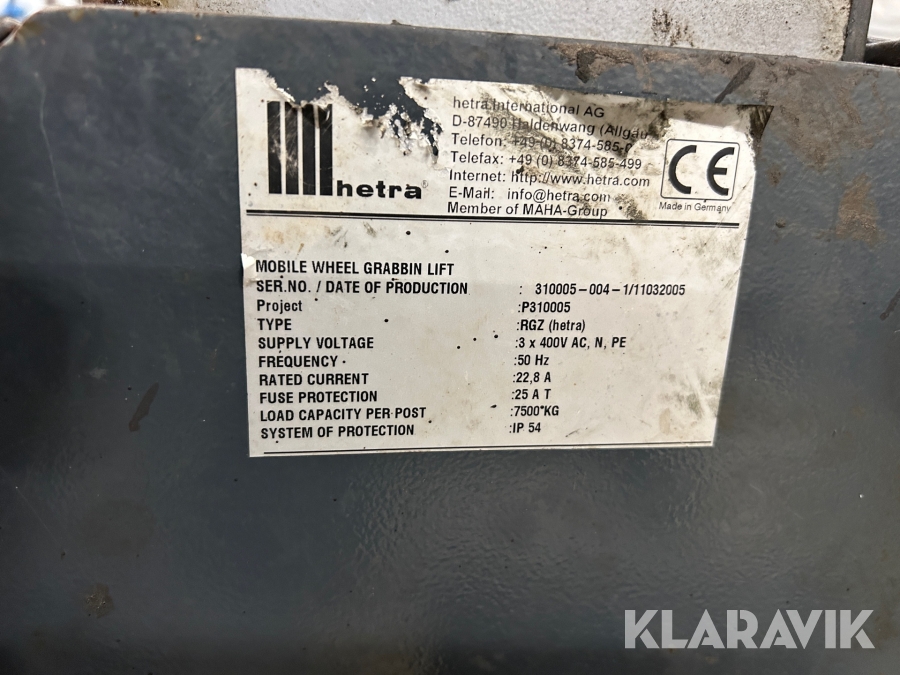 Fordonslyftar /enpelare Hetra RGZ 2 st 7,5 ton