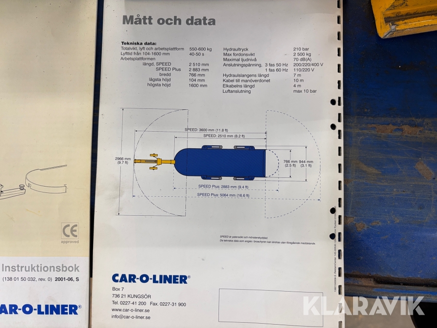 Snabbänk/riktbänk Car-O-Liner Speed 2500 kg