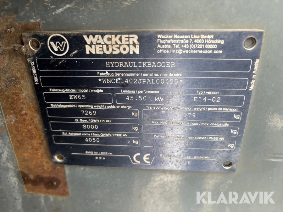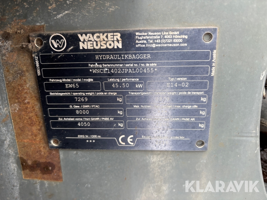 Grävmaskin Wacker Neuson EW65 med tiltrotator vagn samt redskap