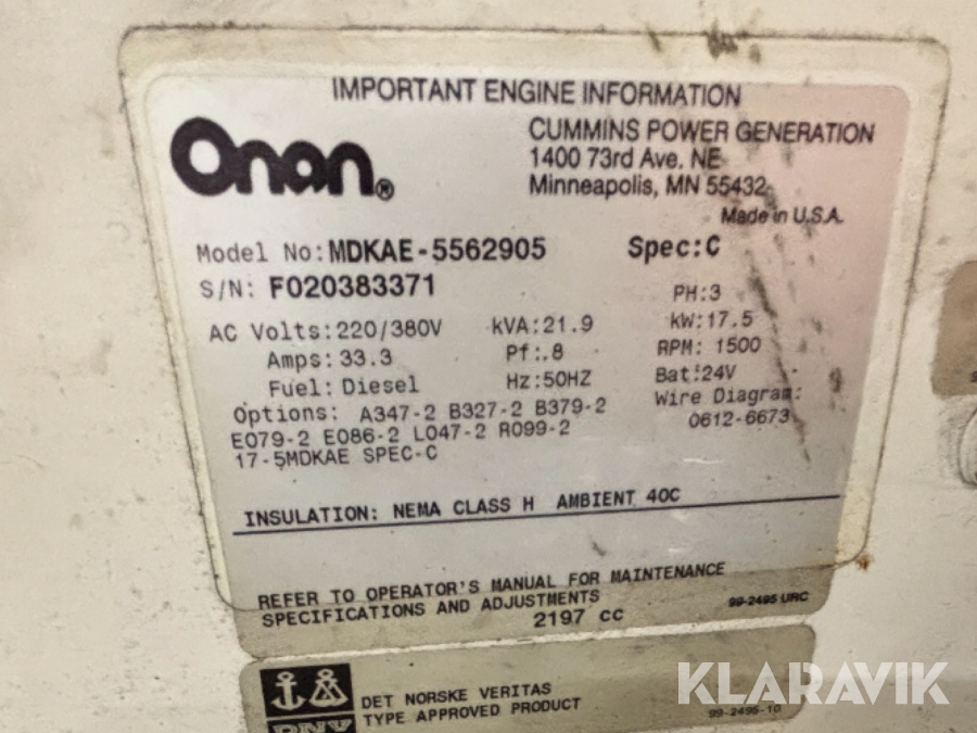 Marint elverk/generator Onan MDKAE-5562905