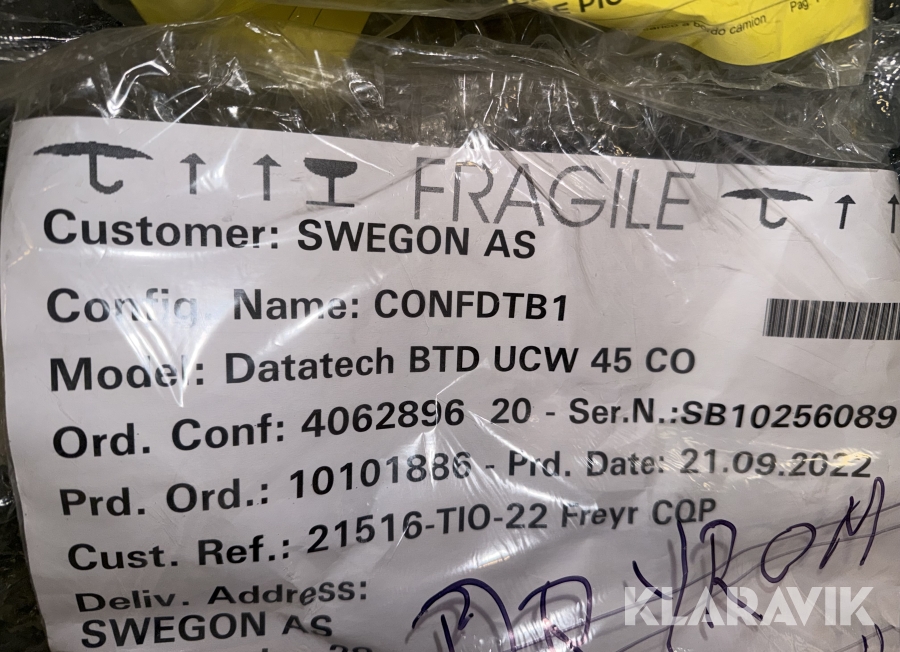 Boka frakt? Det finns ingen specifik information om frakt för just det här objektet, men om du skickar oss en förfrågan via vårt fraktformulär, så undersöker vi möjligheten. Paket, EU-pall eller större maskin? Klaravik har fraktavtal med Schenker och i de fall vi kan hjälpa till med frakt gäller det objekt som ryms i paket eller inom en EU-pall (upp till 120*80 cm och 990 kg). Det går att beställa frakt inom Sverige, dock inte till utlandet. Vid frakt på större maskiner rekommenderar vi gärna transportföretag som du kan kontakta.