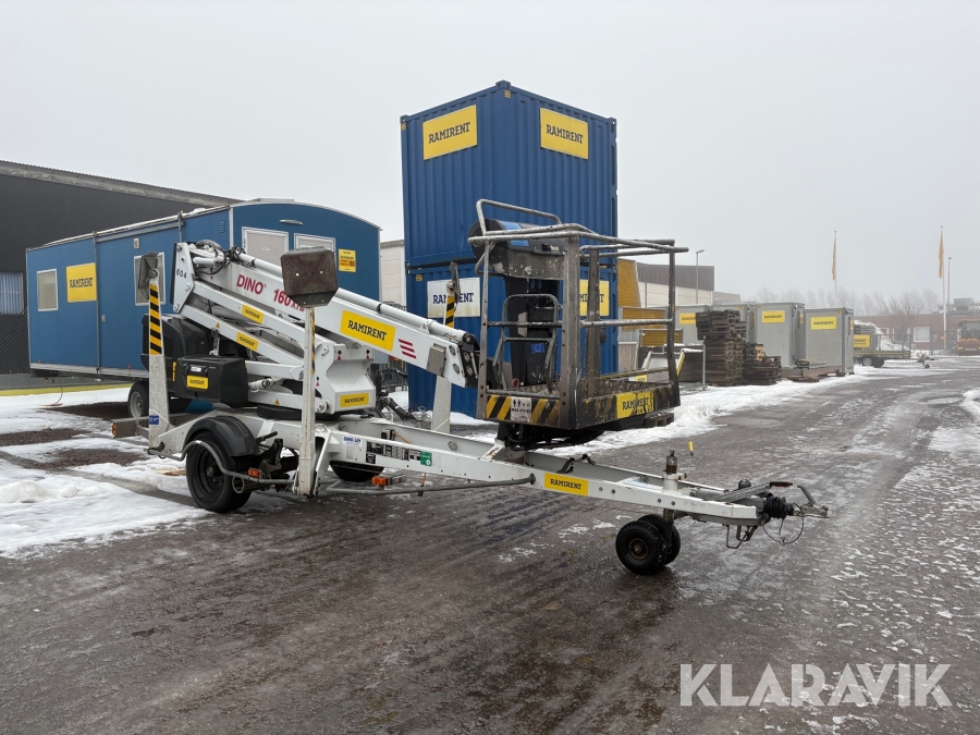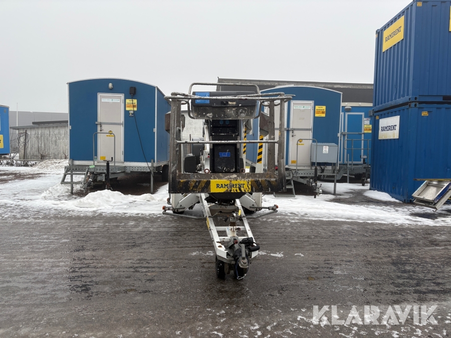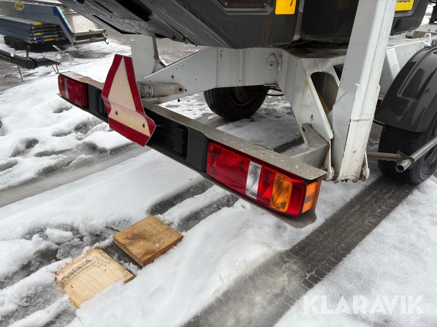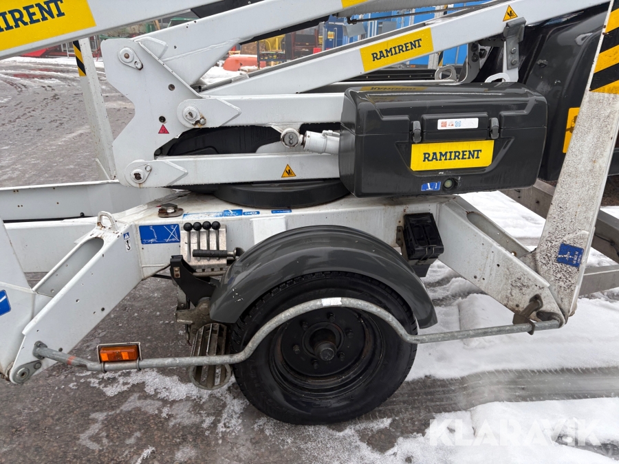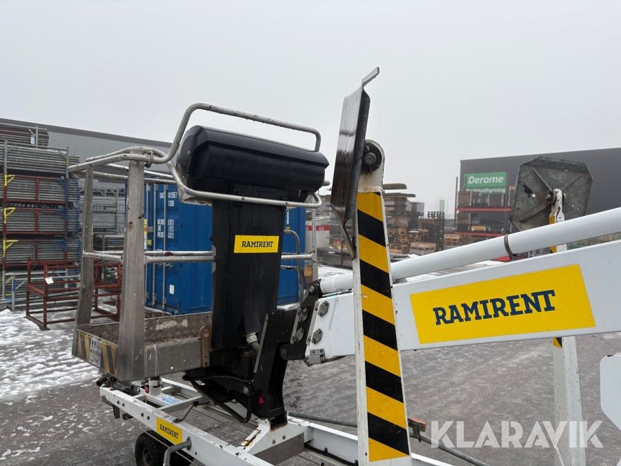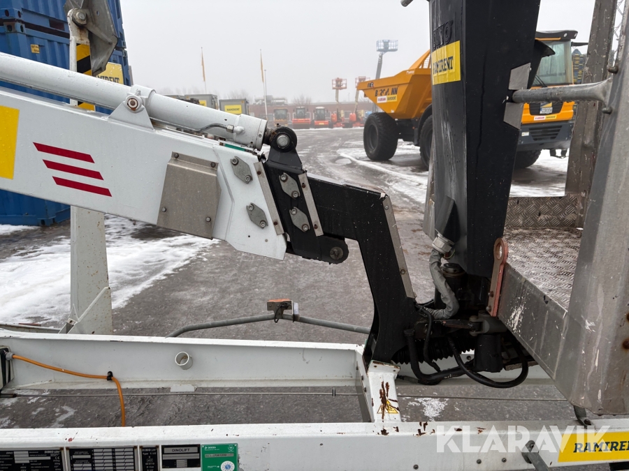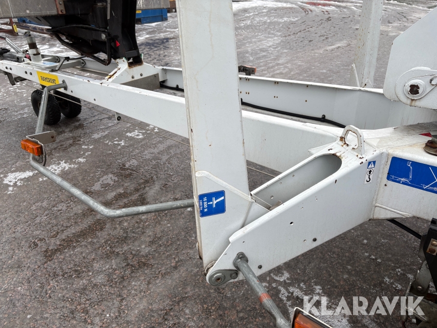 Släpvagnslift vikbom, batteridriven med 14meters plattformshöjd och 9,1 meter utligg.