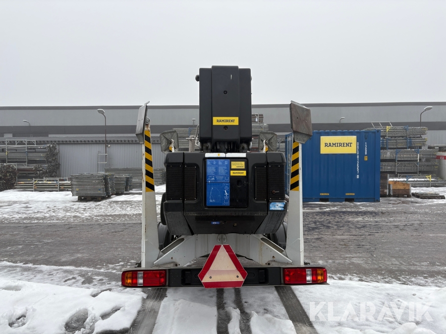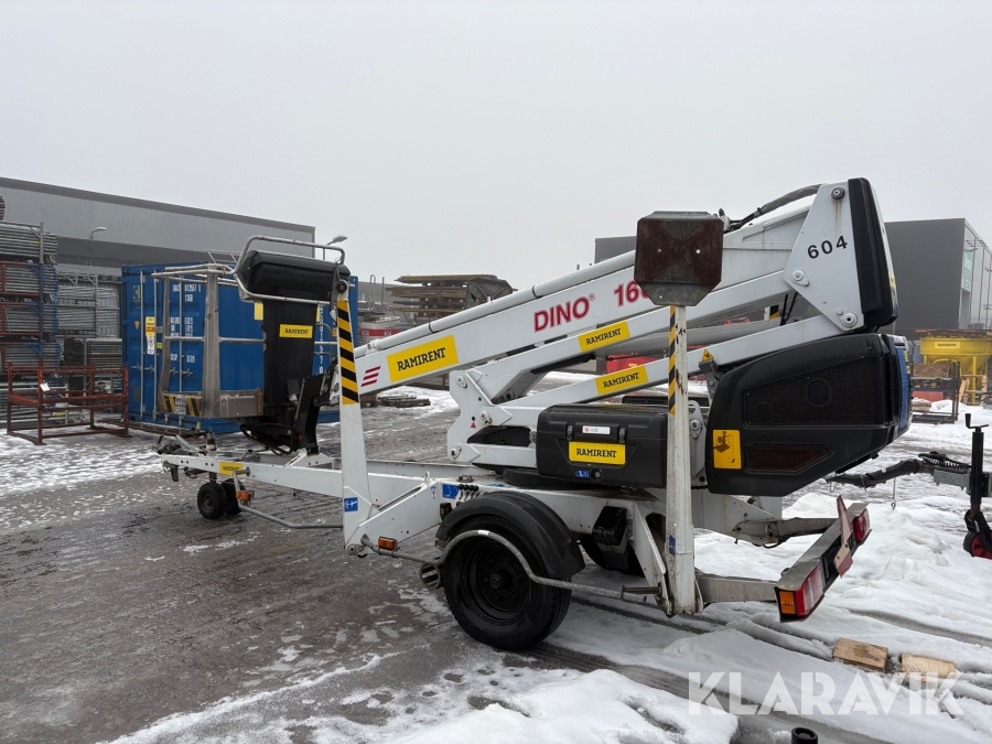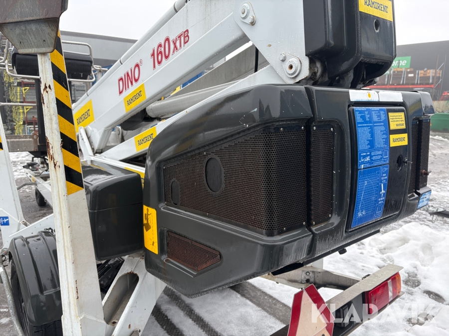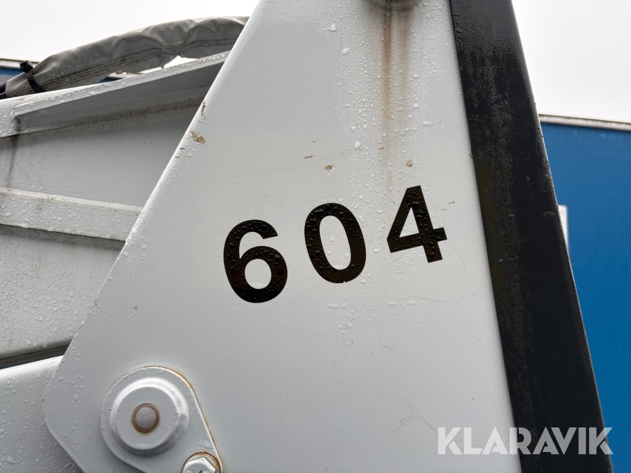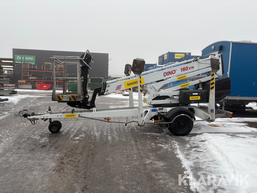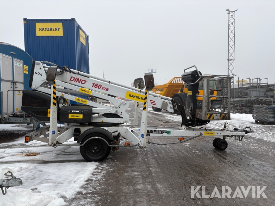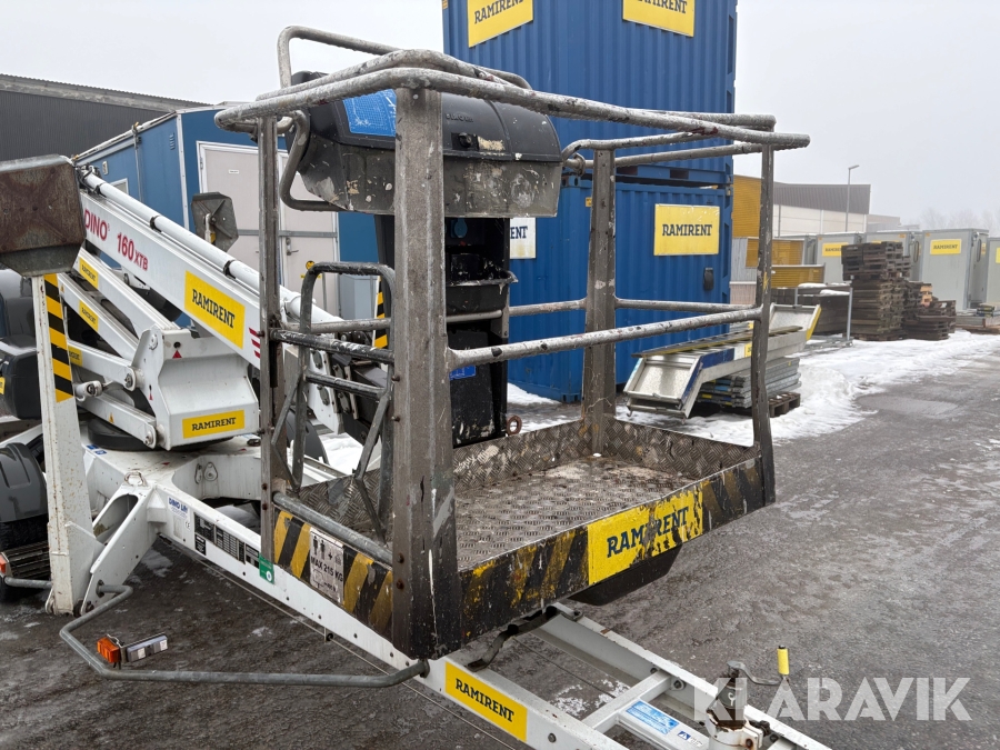 Släpvagnslift vikbom, batteridriven med 14meters plattformshöjd och 9,1 meter utligg.