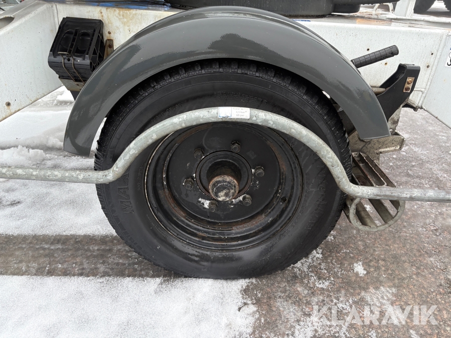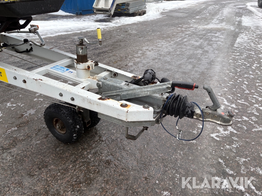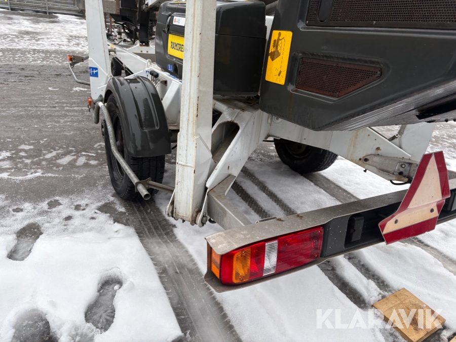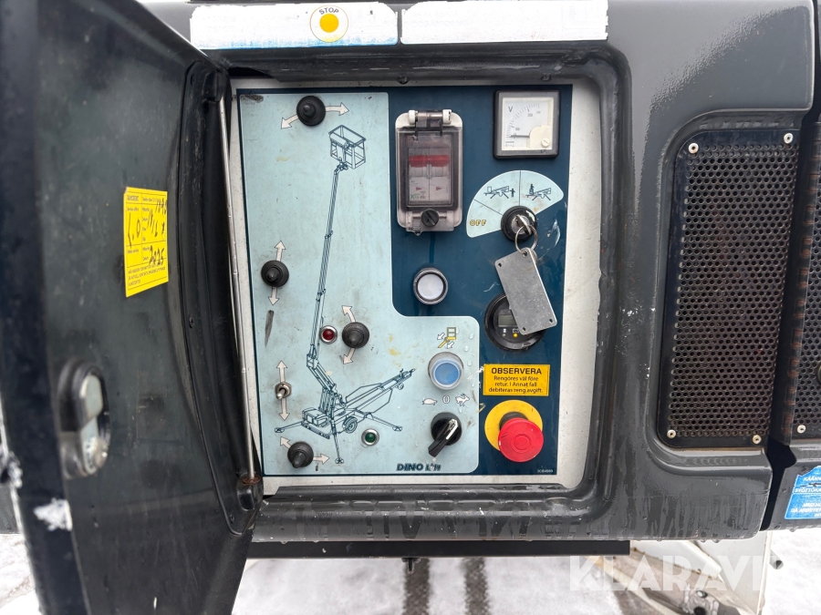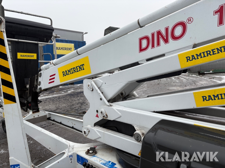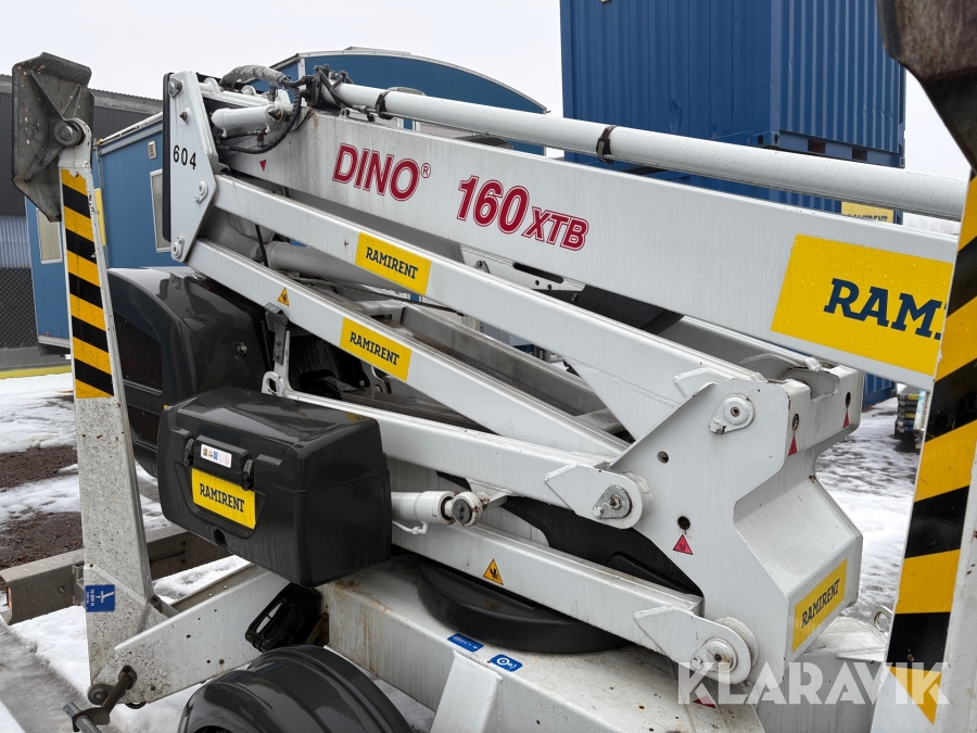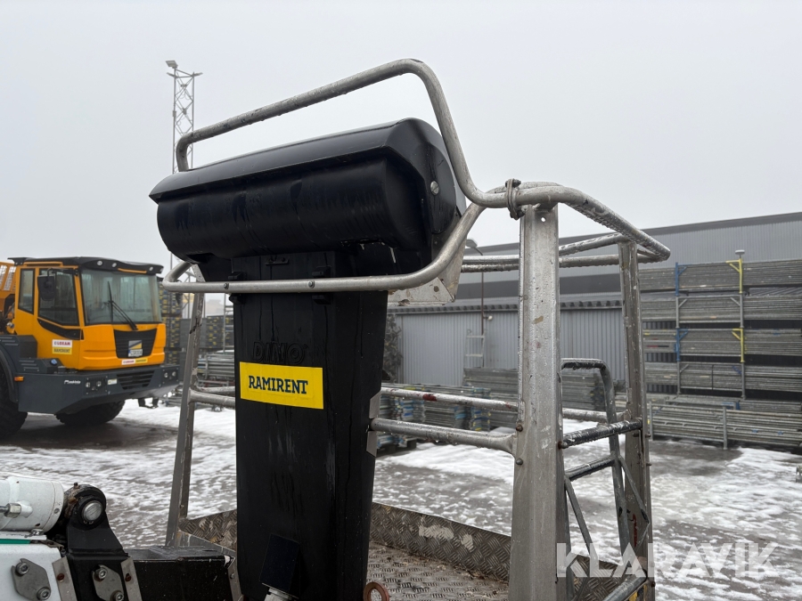 Släpvagnslift vikbom, batteridriven med 14meters plattformshöjd och 9,1 meter utligg.