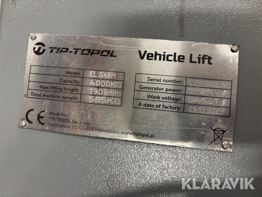 Billyft Tvåpelarlyft Invento EL S40M 4000kg