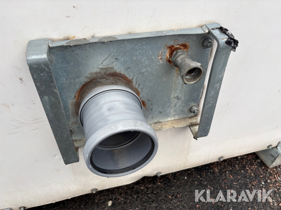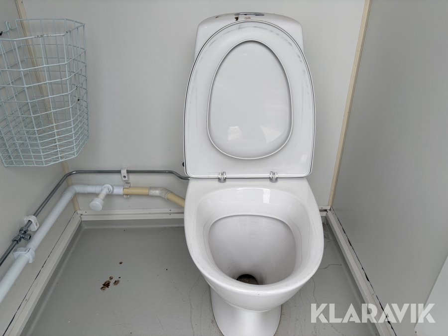 Vattenspolad toalett med anslutning till vatten och avlopp.