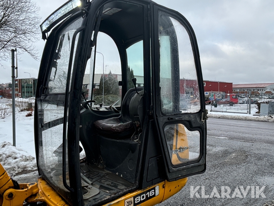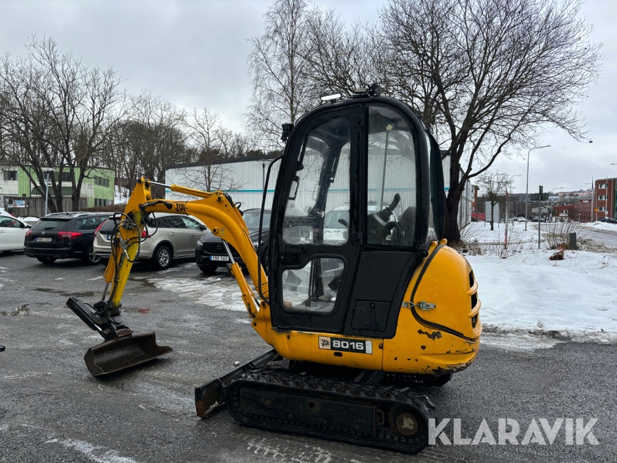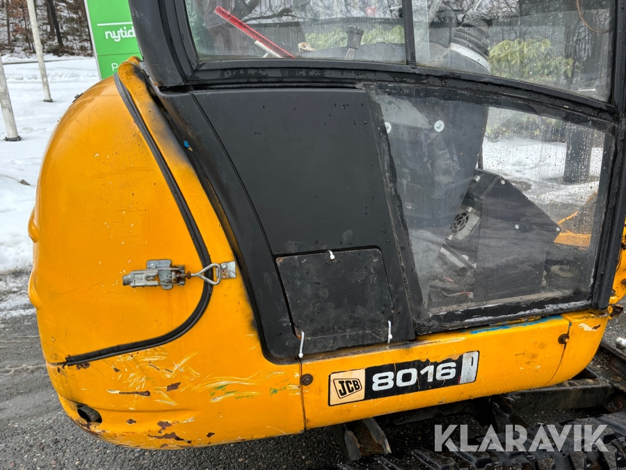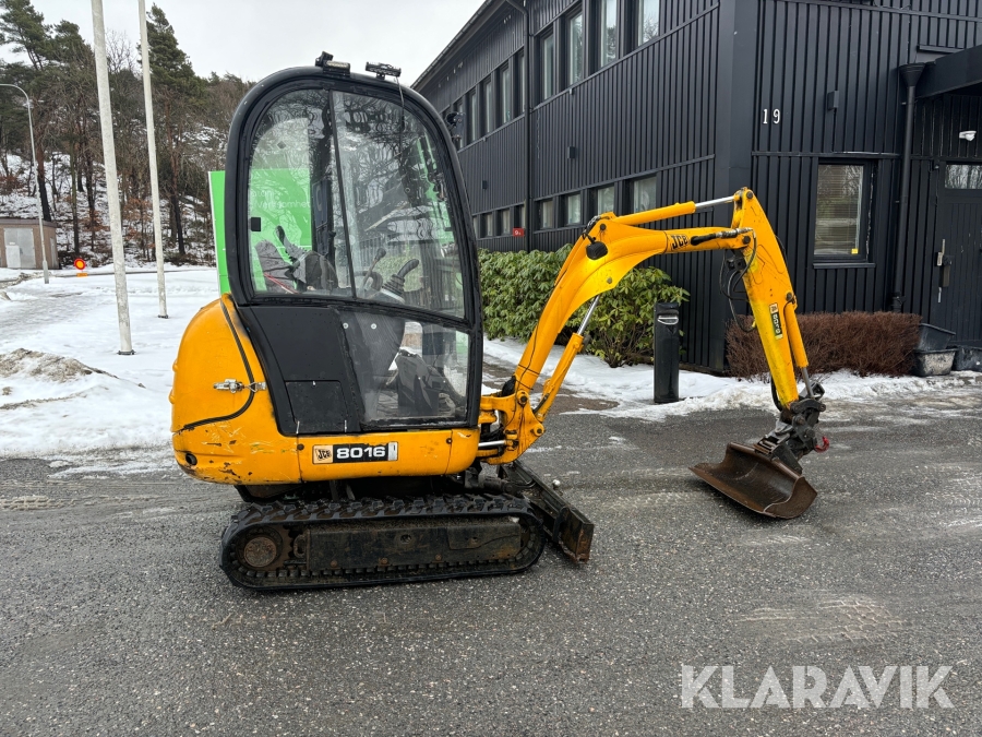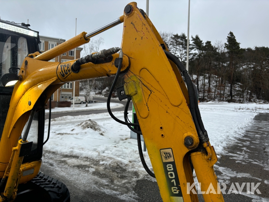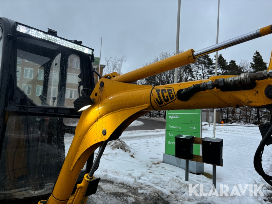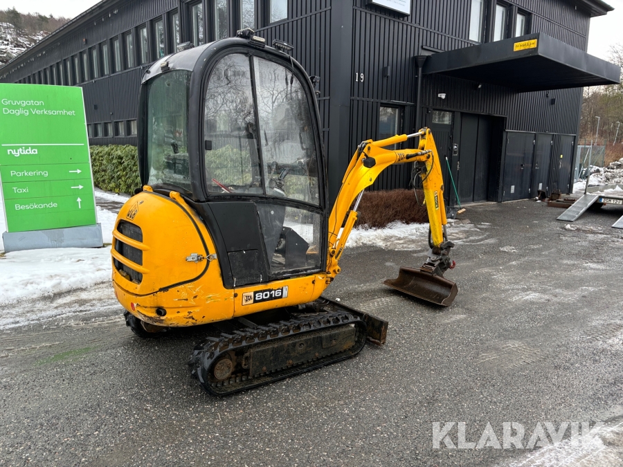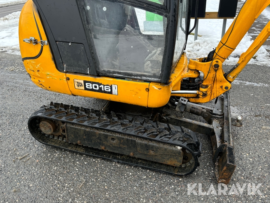 Grävmaskin JCB 8016 med dubbelaxlad maskintrailer med ramp
