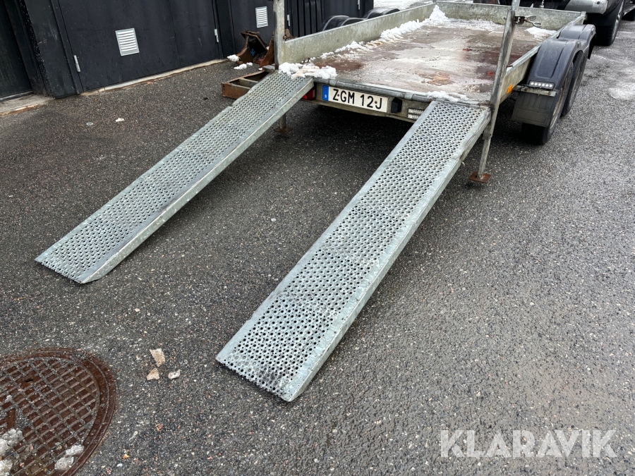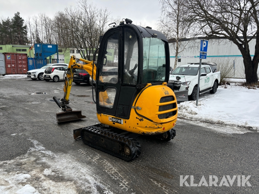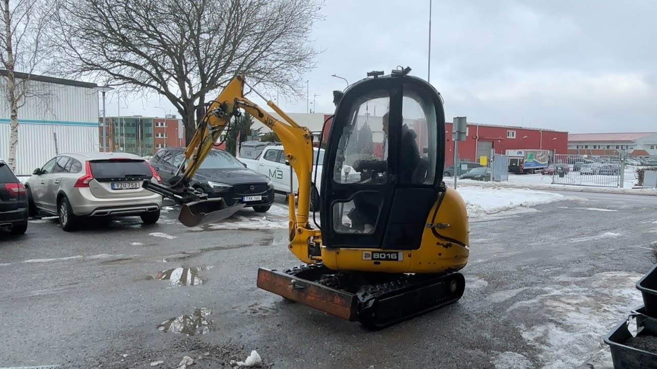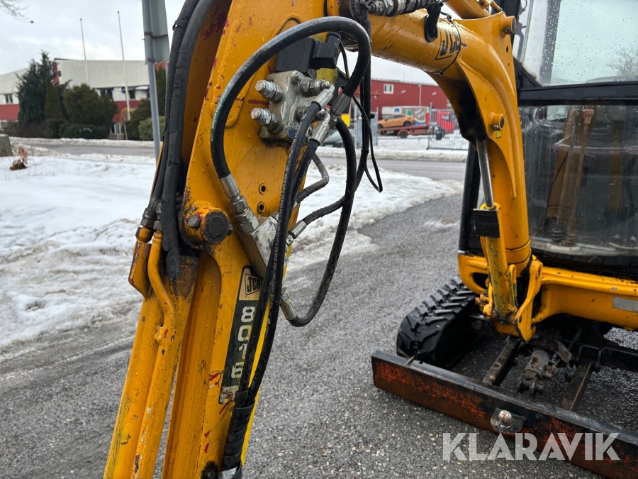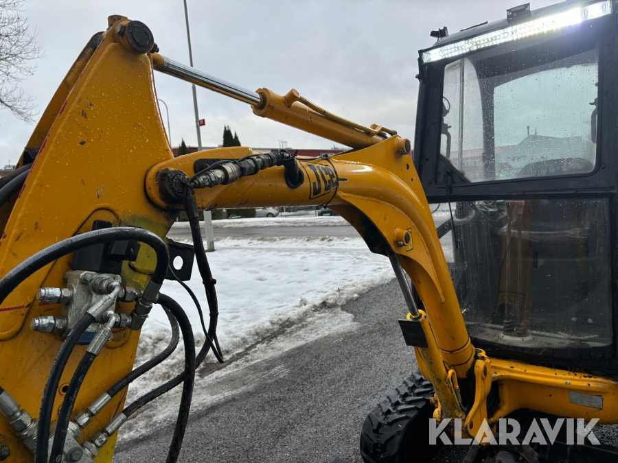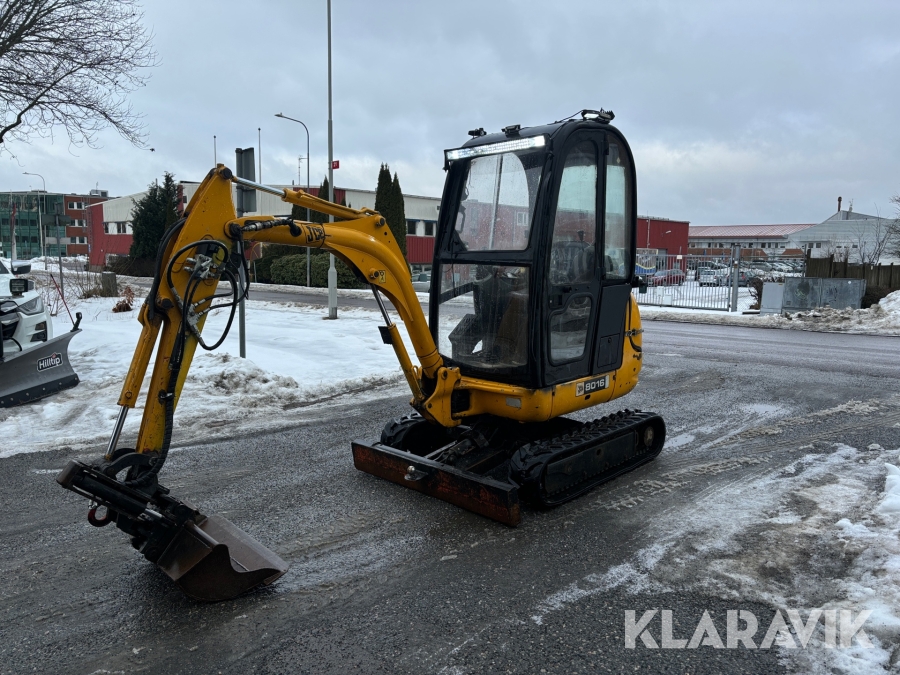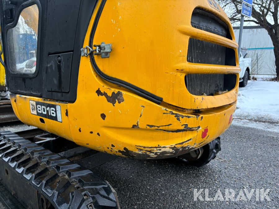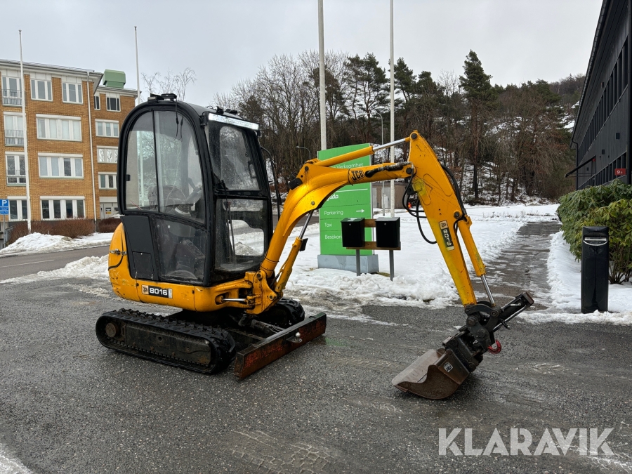 Grävmaskin JCB 8016 med dubbelaxlad maskintrailer med ramp