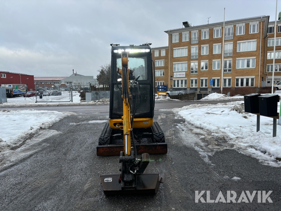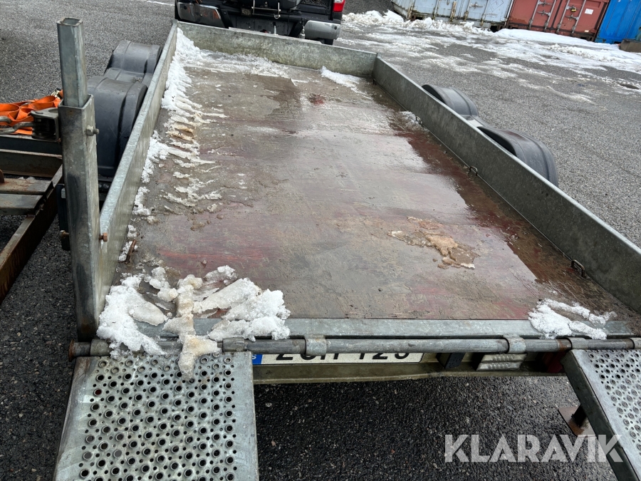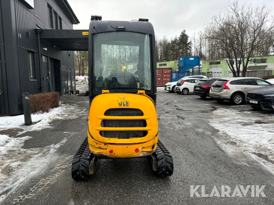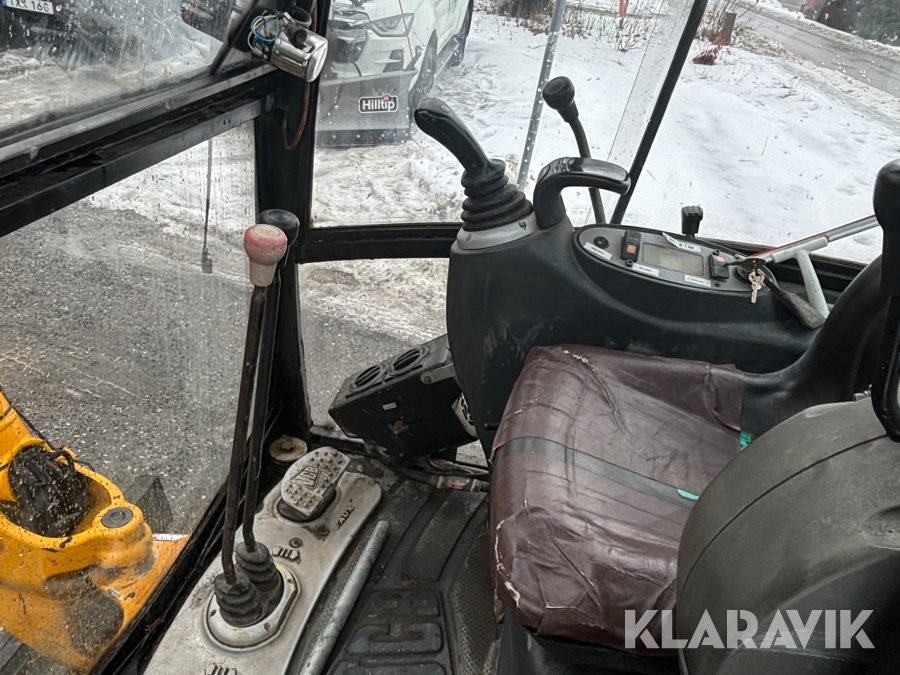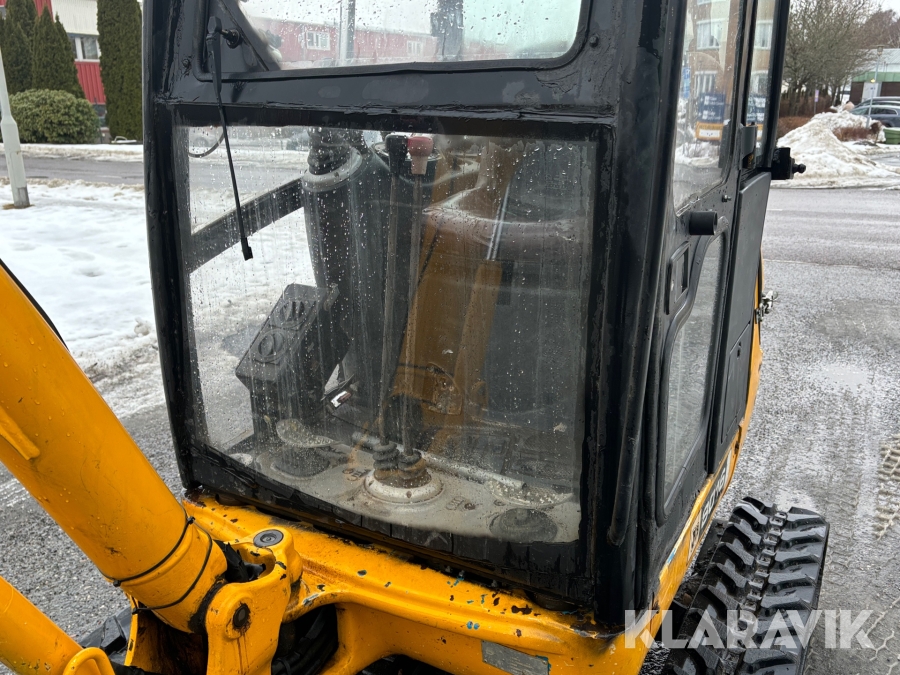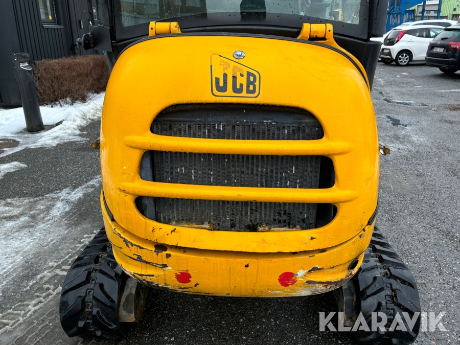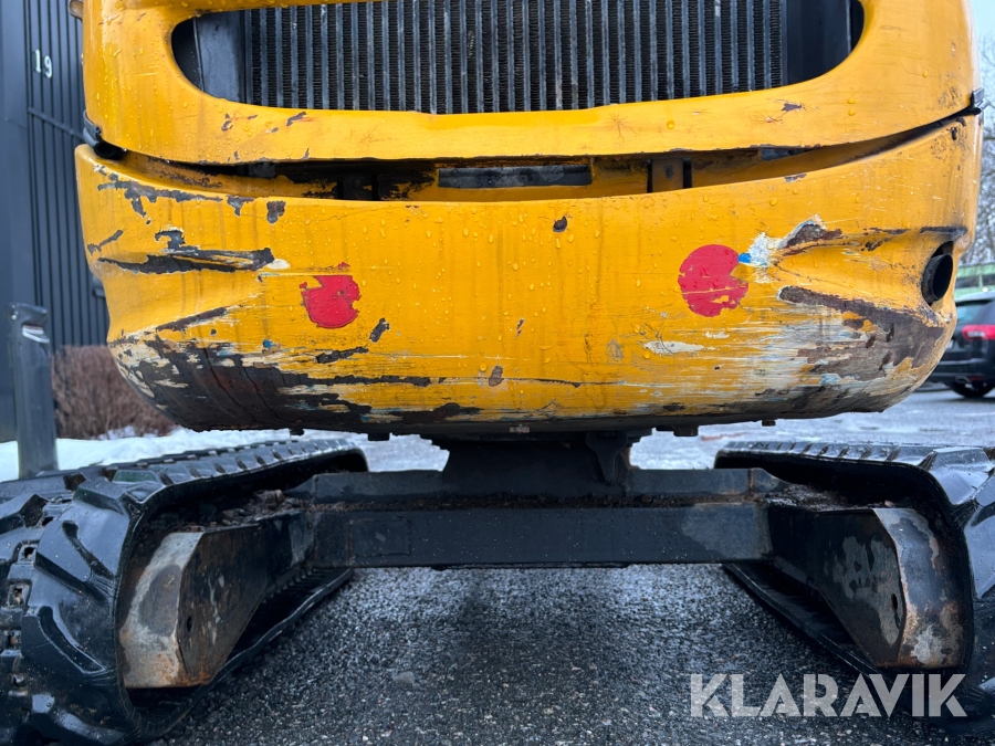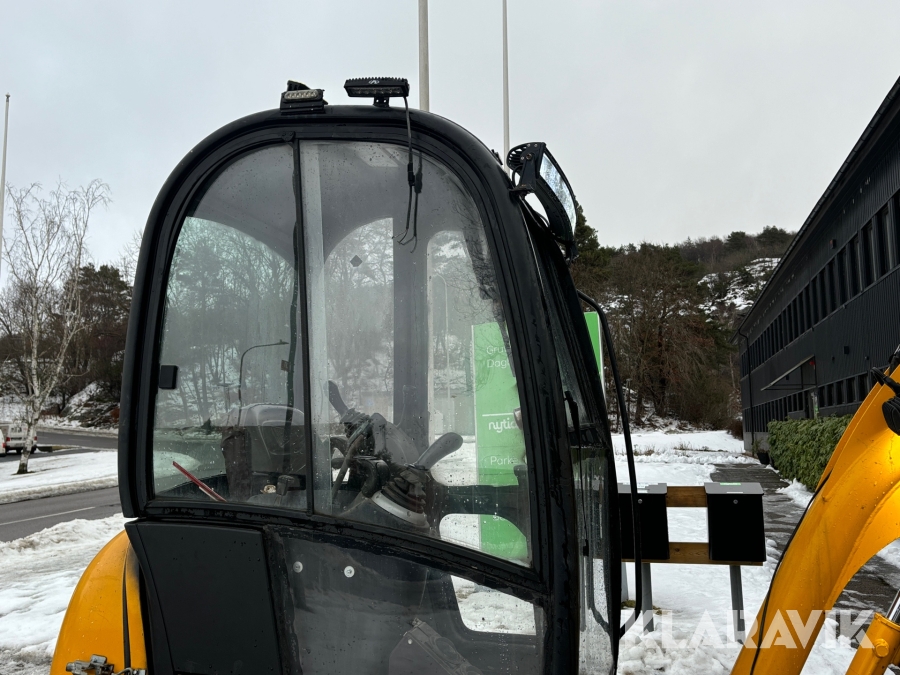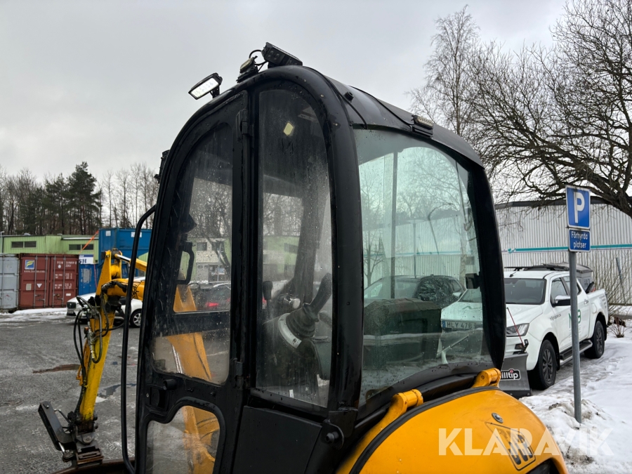 Grävmaskin JCB 8016 med dubbelaxlad maskintrailer med ramp