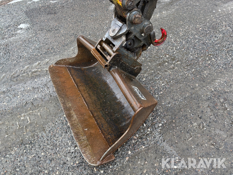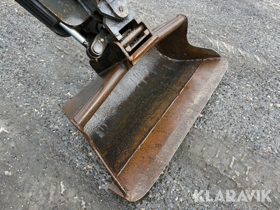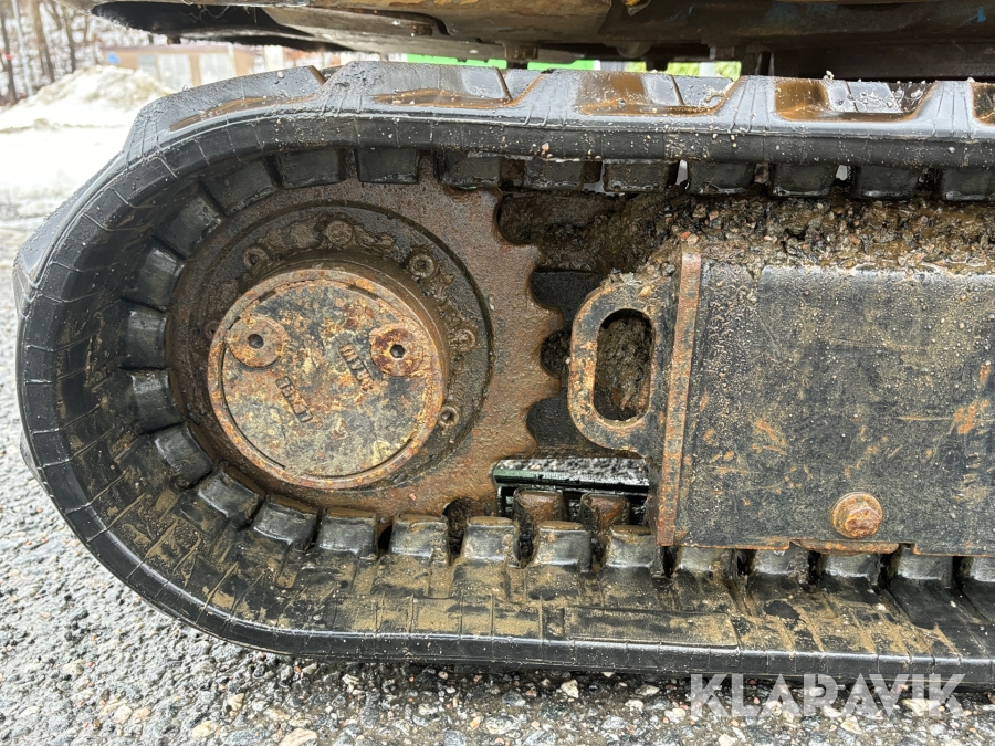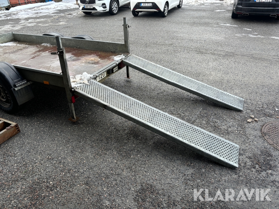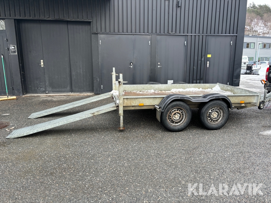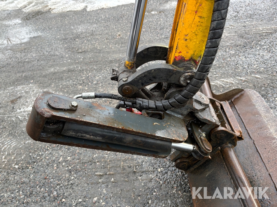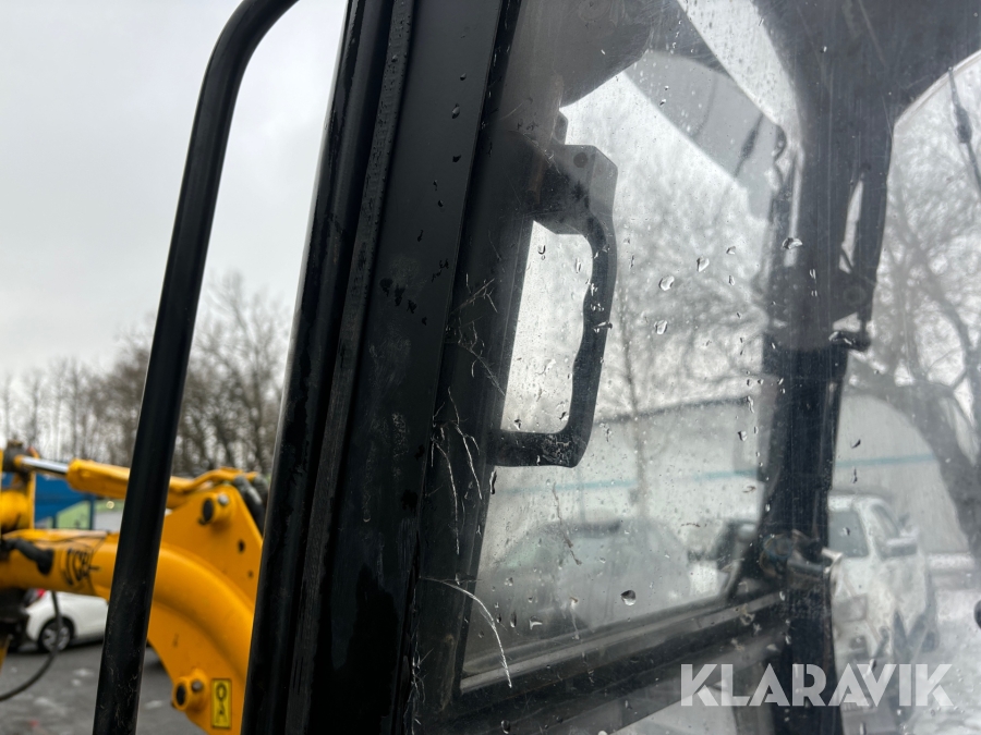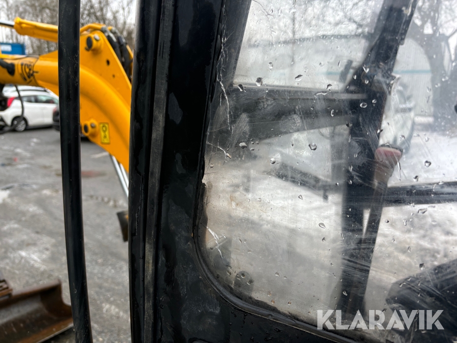 Grävmaskin JCB 8016 med dubbelaxlad maskintrailer med ramp