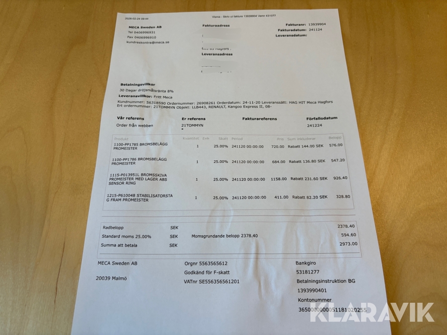 Du som köpare är skyldig att kontrollera objektet vid hämtning. Skiljer sig något avsevärt jämfört med informationen på klaravik.se? Kontakta då Klaravik innan du tar objektet från platsen. Läs fullständiga köpvillkor.