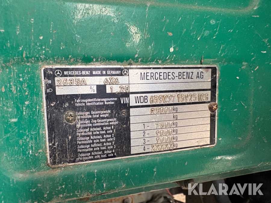 Självgående gödseltunna Mercedes-Benz 2635A 6wd, 20m3, kran med cobra pump