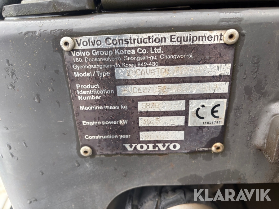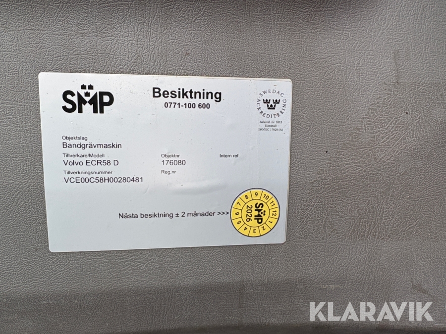 Grävmaskin Volvo ECR58D med tiltrotator och 6 st verktyg