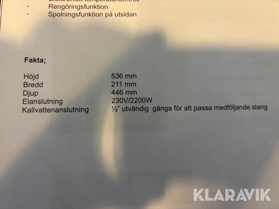 Boka frakt? Det finns ingen specifik information om frakt för just det här objektet, men om du skickar oss en förfrågan via vårt fraktformulär, så undersöker vi möjligheten. Paket, EU-pall eller större maskin? Klaravik har fraktavtal med Schenker och i de fall vi kan hjälpa till med frakt gäller det objekt som ryms i paket eller inom en EU-pall (upp till 120*80 cm och 990 kg). Det går att beställa frakt inom Sverige, dock inte till utlandet. Vid frakt på större maskiner rekommenderar vi gärna transportföretag som du kan kontakta.
