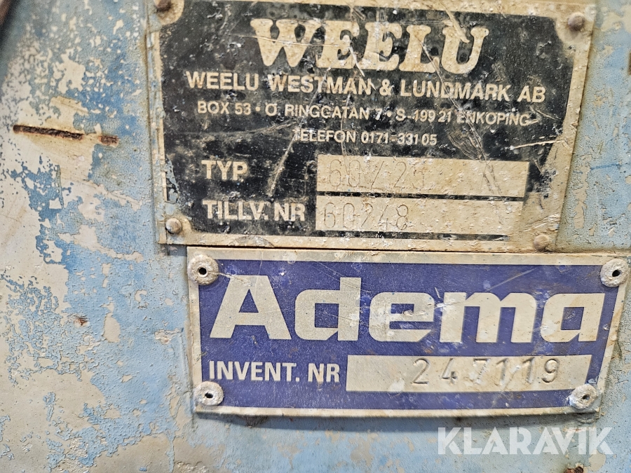 Boka frakt? Det finns ingen specifik information om frakt för just det här objektet, men om du skickar oss en förfrågan via vårt fraktformulär, så undersöker vi möjligheten. Paket, EU-pall eller större maskin? Klaravik har fraktavtal med Schenker och i de fall vi kan hjälpa till med frakt gäller det objekt som ryms i paket eller inom en EU-pall (upp till 120*80 cm och 990 kg). Det går att beställa frakt inom Sverige, dock inte till utlandet. Vid frakt på större maskiner rekommenderar vi gärna transportföretag som du kan kontakta.