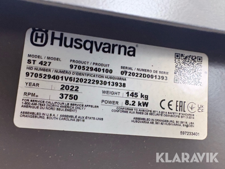 Snöslunga Husqvarna ST427 NY