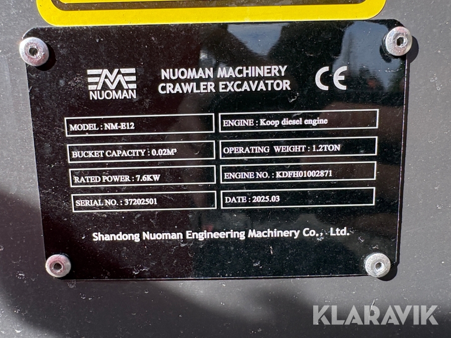 Grävmaskin Nuoman Machinery NM-E12 minigrävare diesel