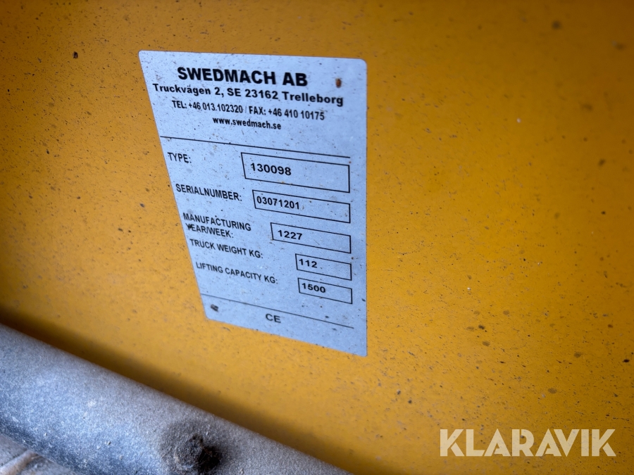 Pga platsbrist är det viktigt att du som köpare hämtar inom 12 dagar från auktionsavslut. Vid frågor om frakt kontakta trade@ramirent.se.