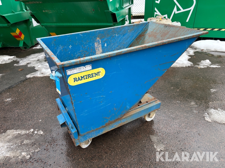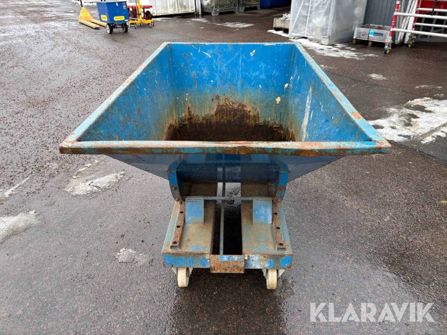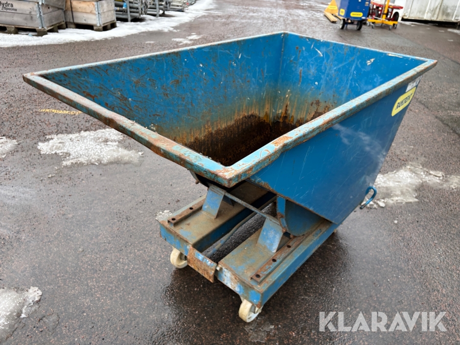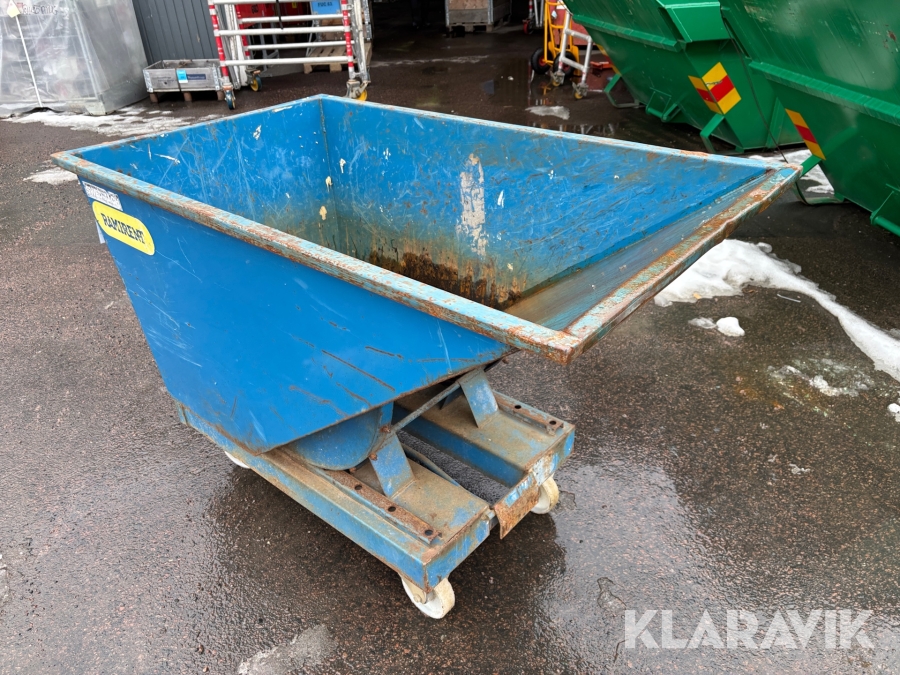 Självtömmande tippcontainer för lättare avfallshantering. Pulverlackerad för bättre rostskydd. Med gaffelfickor