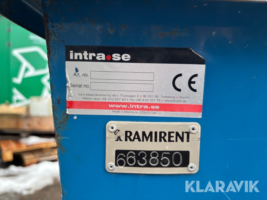 Pga platsbrist är det viktigt att du som köpare hämtar inom 12 dagar från auktionsavslut. Vid frågor om frakt kontakta trade@ramirent.se.