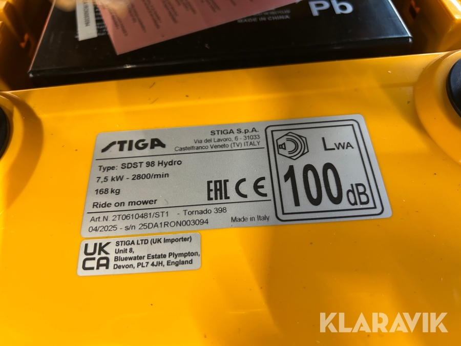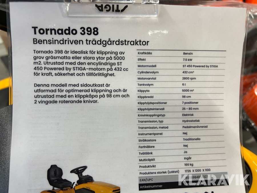 Åkgräsklippare Stiga Tornado 398