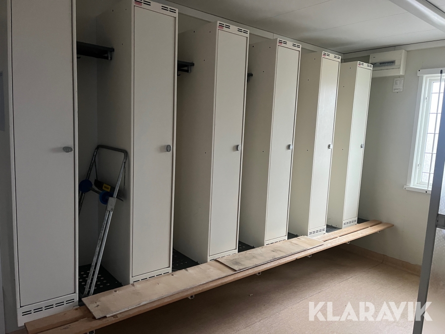 Mat och omklädningsplats för sex personer.