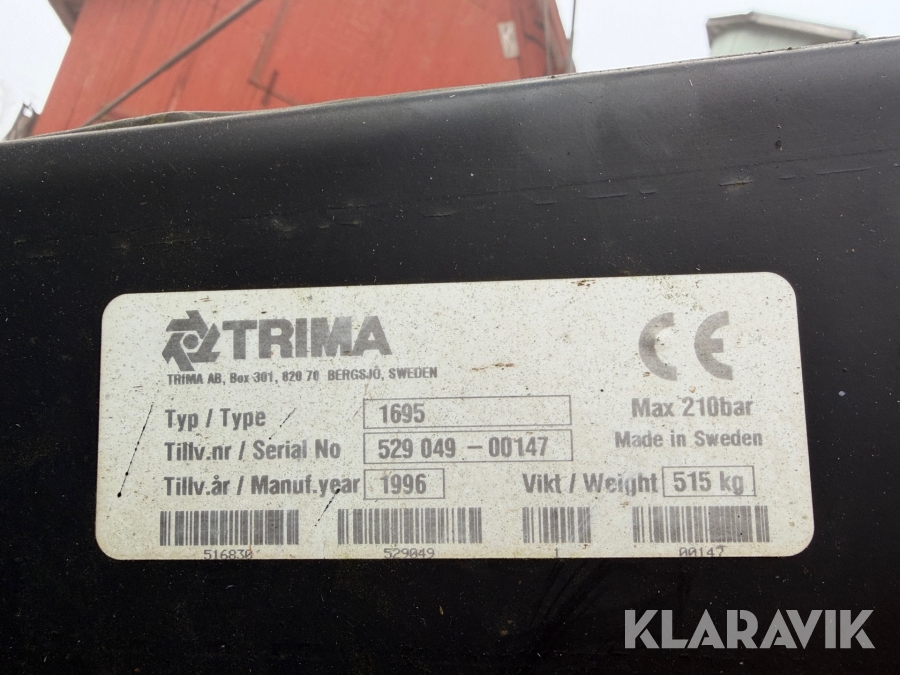 Boka frakt? Det finns ingen specifik information om frakt för just det här objektet, men om du skickar oss en förfrågan via vårt fraktformulär, så undersöker vi möjligheten. Paket, EU-pall eller större maskin? Klaravik har fraktavtal med Schenker och i de fall vi kan hjälpa till med frakt gäller det objekt som ryms i paket eller inom en EU-pall (upp till 120*80 cm och 990 kg). Det går att beställa frakt inom Sverige, dock inte till utlandet. Vid frakt på större maskiner rekommenderar vi gärna transportföretag som du kan kontakta.