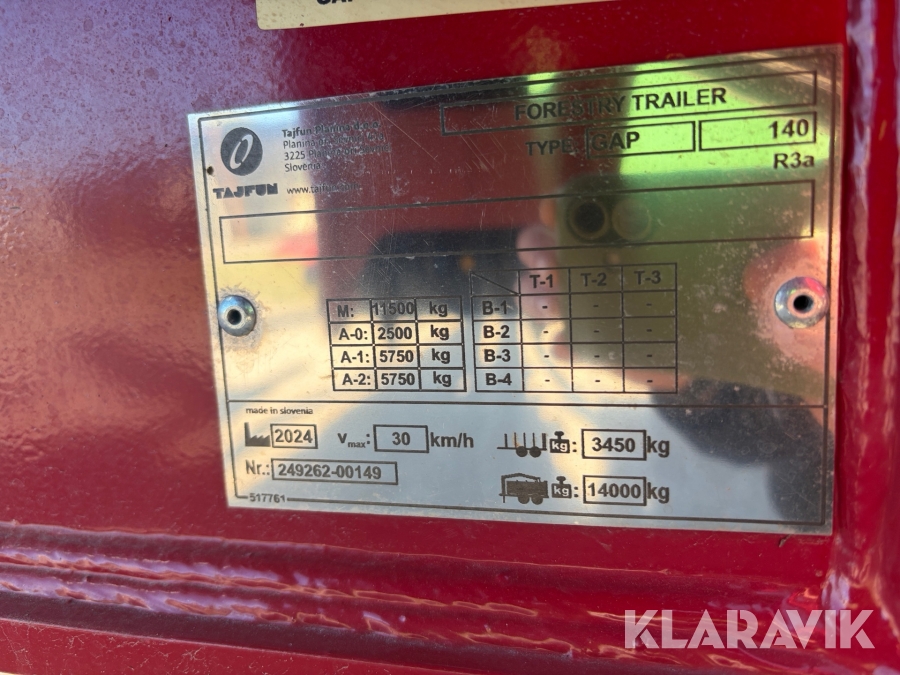 Skogsvagn Tajfun GAP 140 med kran DOT 55K