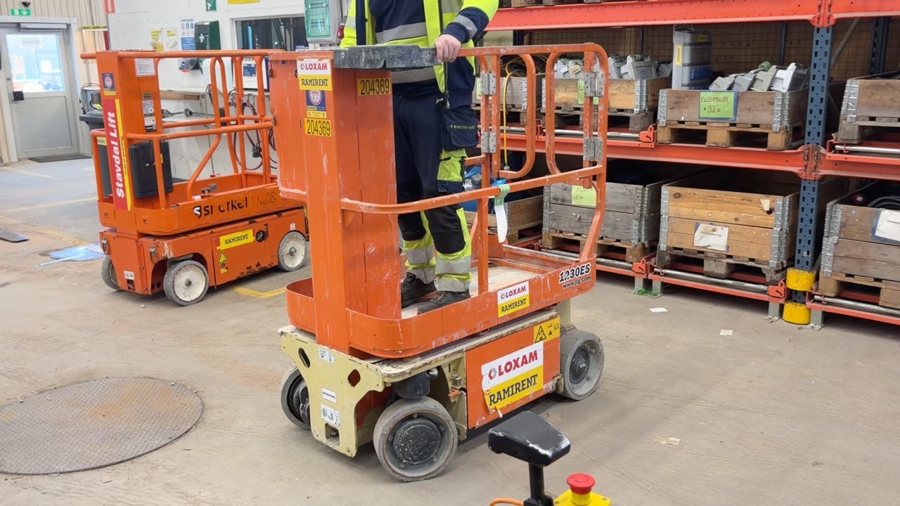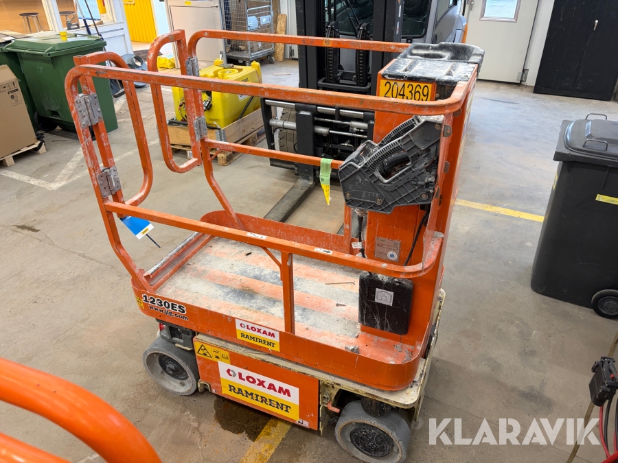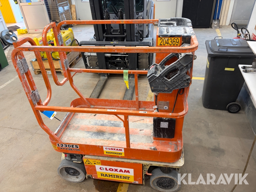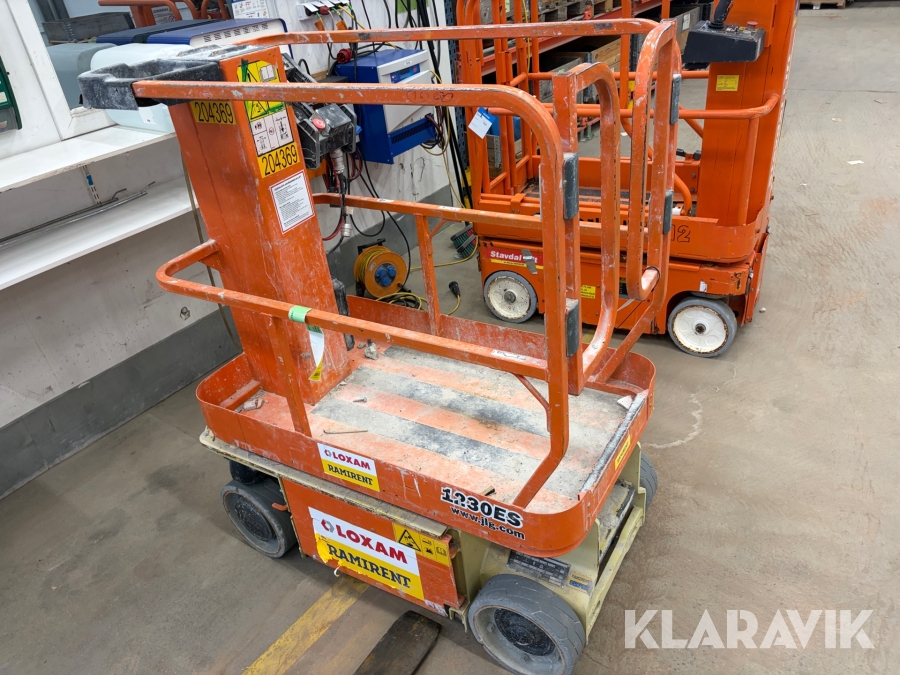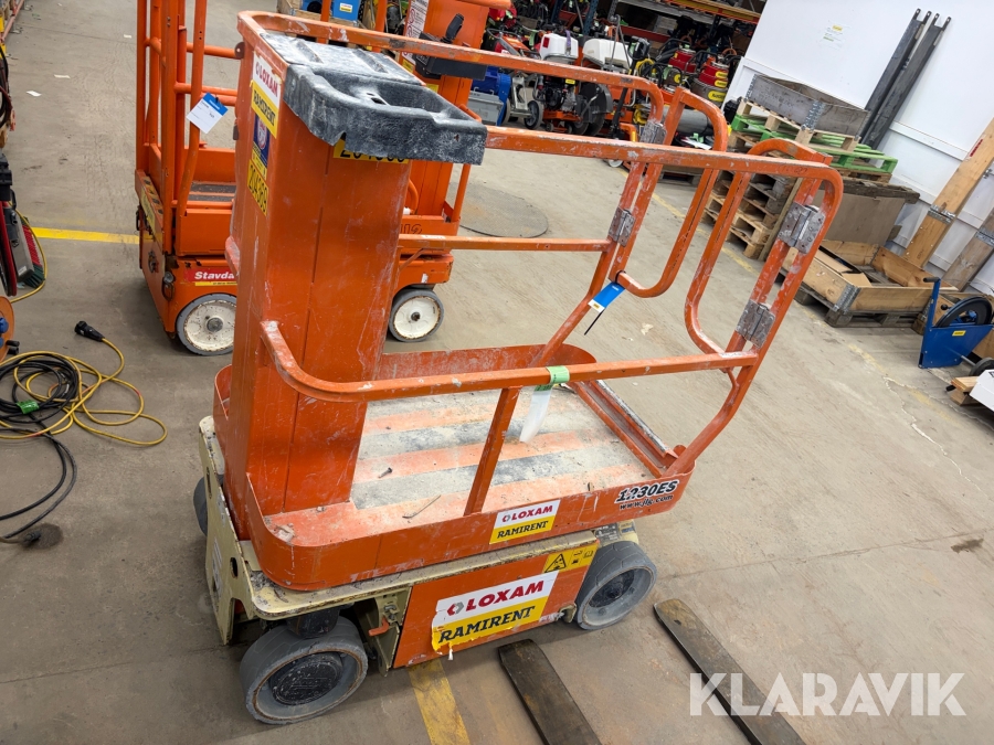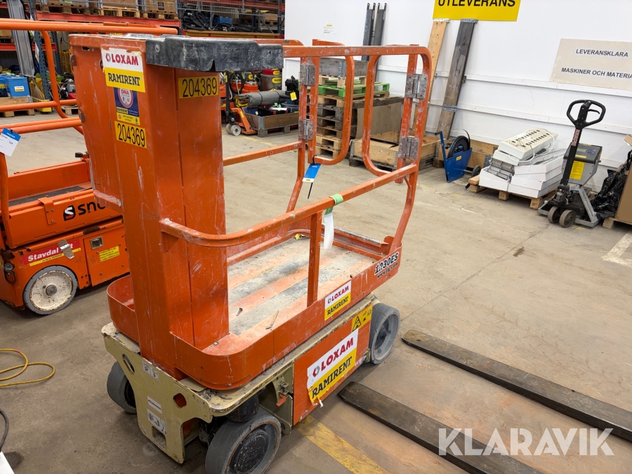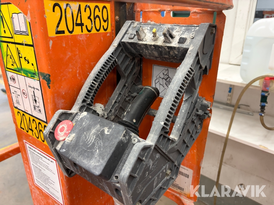 JLG 1230ES är en kompakt och eldriven pelarlift som är idealisk för arbete på höjd i trånga inomhusmiljöer. Med en arbetshöjd på upp till 5,66 meter och en plattformskapacitet på 230 kg erbjuder den en stabil och säker arbetsplattform för en person med verktyg. Dess smala bredd på endast 0,76 meter och låga vikt på cirka 790 kg gör den lätt att manövrera genom standarddörrar och i hissar, vilket underlättar arbete i begränsade utrymmen. Med en svängradie på endast 13 cm och en körhastighet på upp till 4,8 km/h i nedfällt läge är den mycket lättmanövrerad. Säkerhetsfunktioner som lutningssensor, potthålsskydd och varningslarm är standard, vilket gör JLG 1230ES till ett pålitligt val för underhålls- och installationsarbeten inomhus.