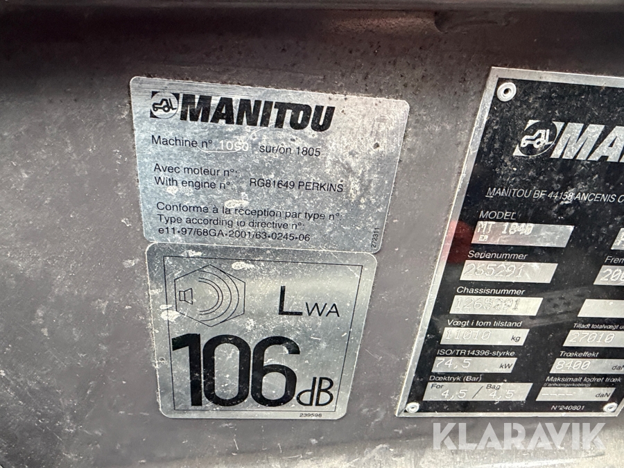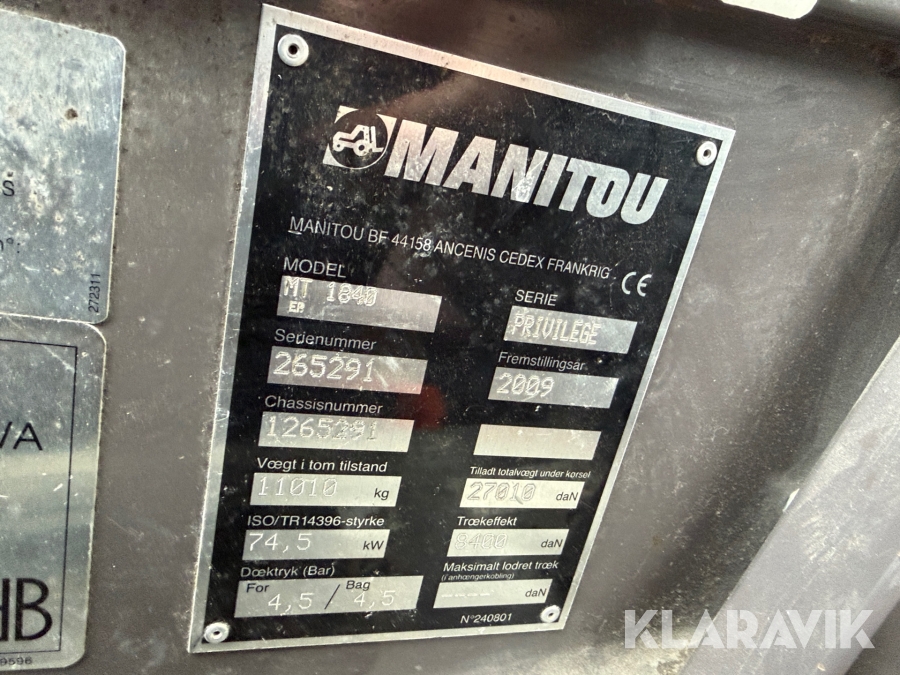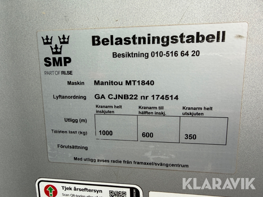 Teleskoplastare Manitou MT1840 med manskapskorg