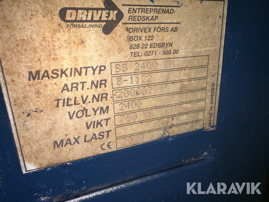 Boka frakt? Det finns ingen specifik information om frakt för just det här objektet, men om du skickar oss en förfrågan via vårt fraktformulär, så undersöker vi möjligheten. Paket, EU-pall eller större maskin? Klaravik har fraktavtal med Schenker och i de fall vi kan hjälpa till med frakt gäller det objekt som ryms i paket eller inom en EU-pall (upp till 120*80 cm och 990 kg). Det går att beställa frakt inom Sverige, dock inte till utlandet. Vid frakt på större maskiner rekommenderar vi gärna transportföretag som du kan kontakta.