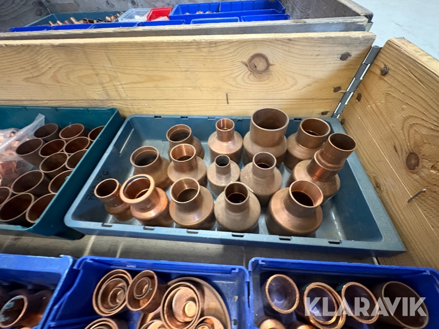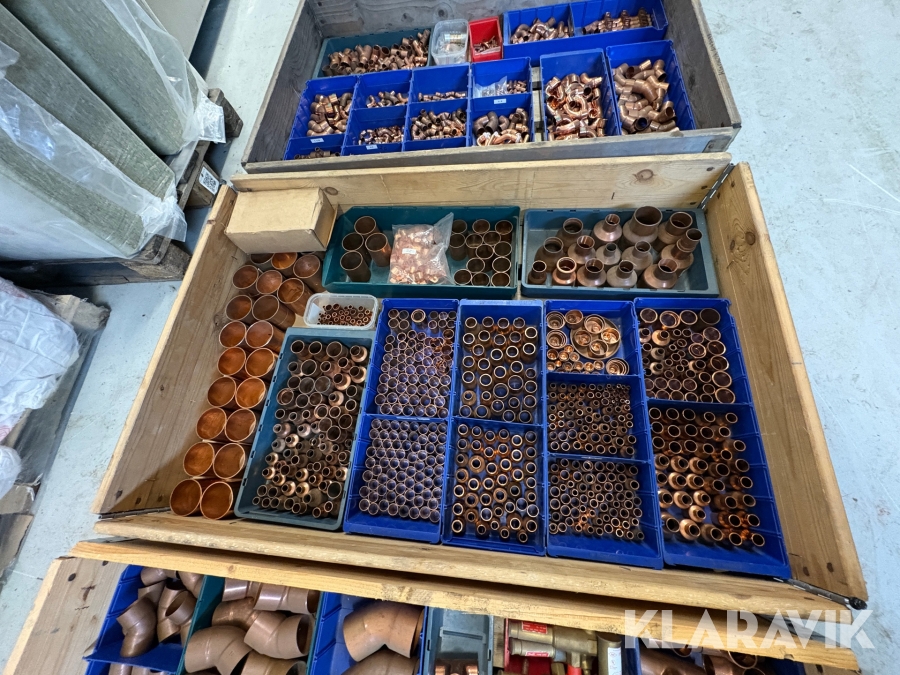 Parti med rörkopplingar koppar