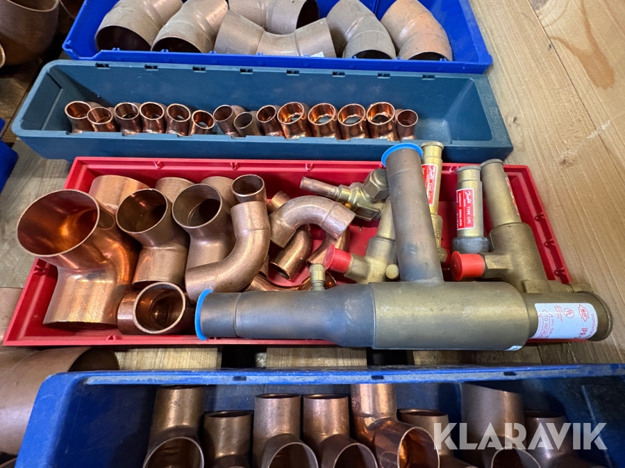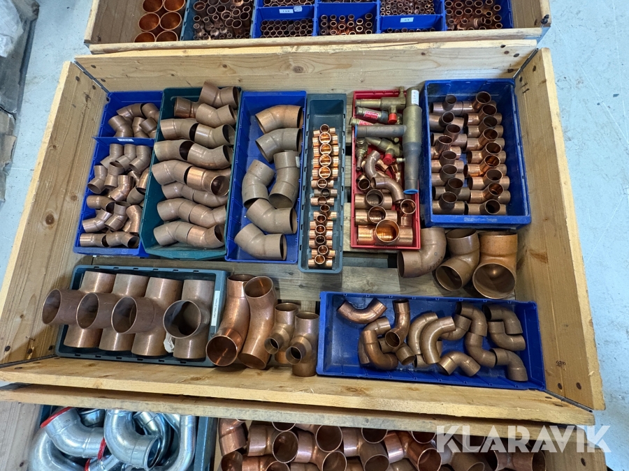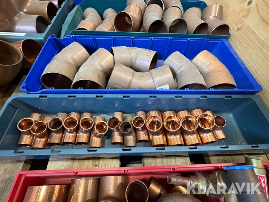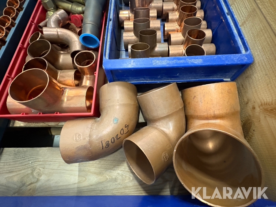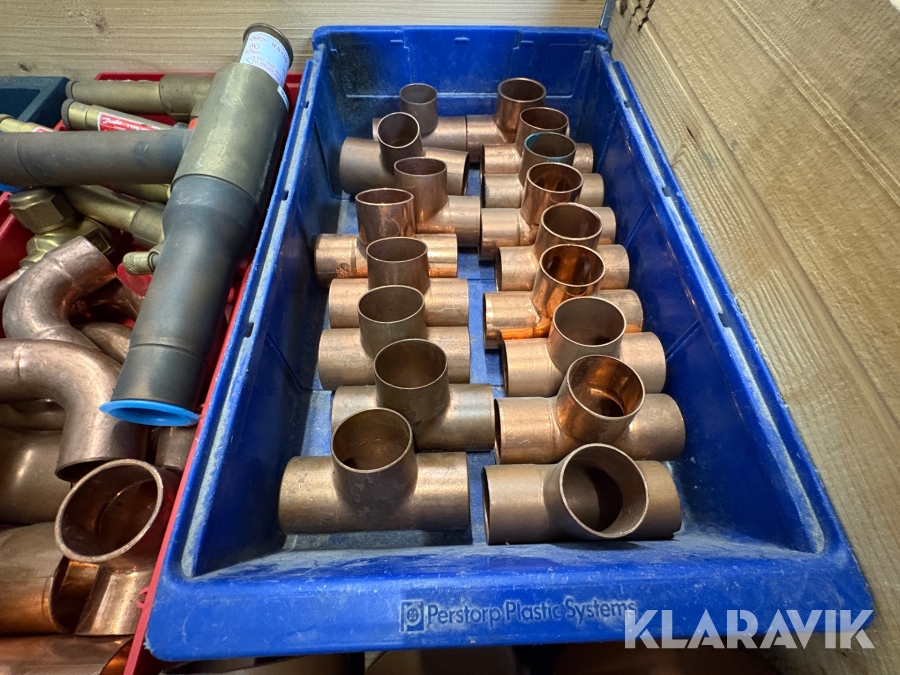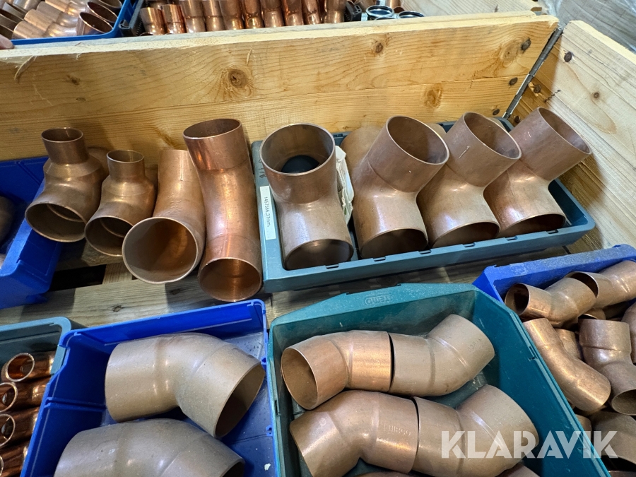 Parti med rörkopplingar koppar