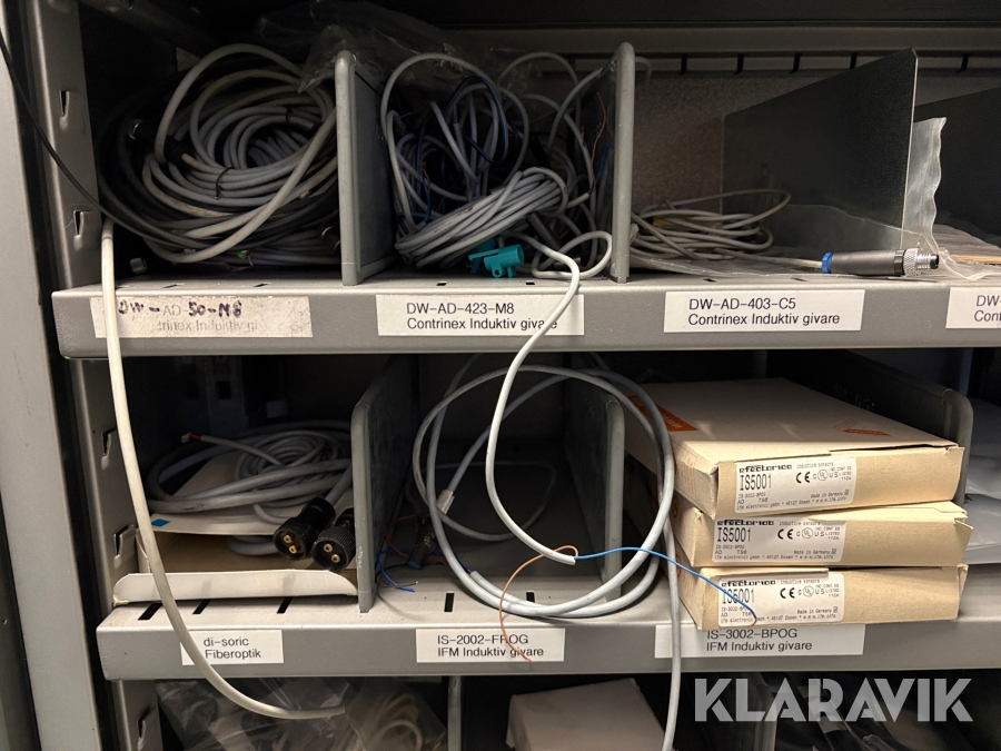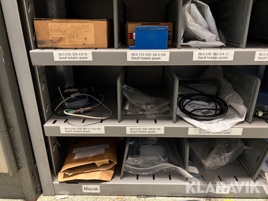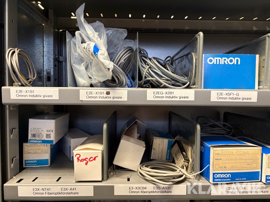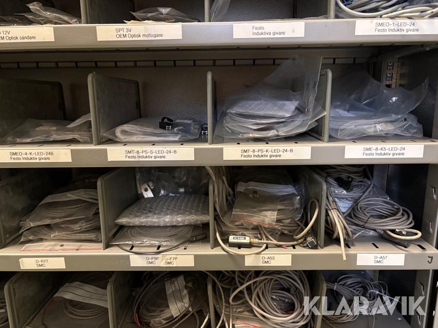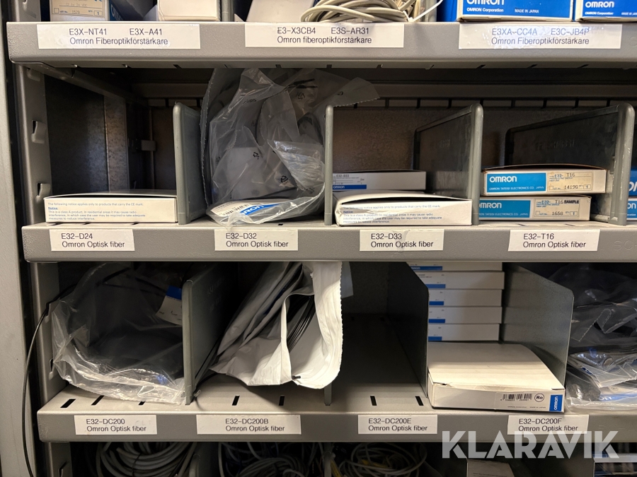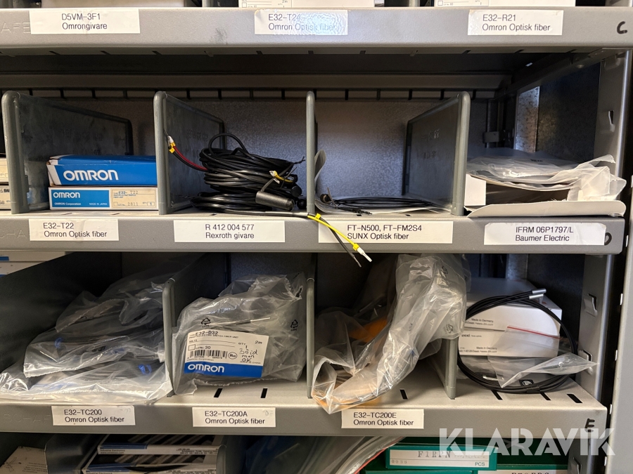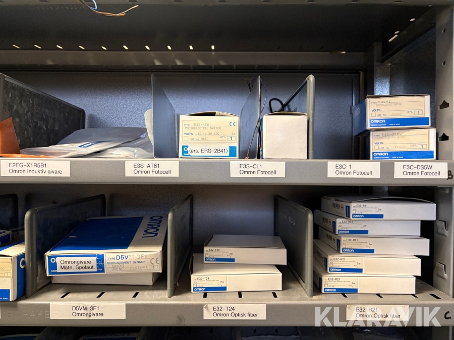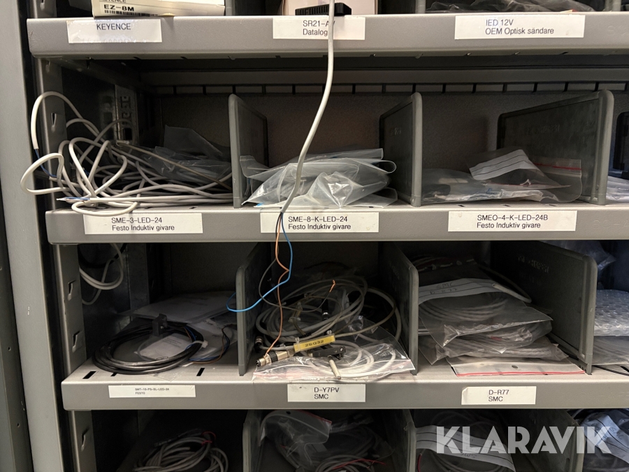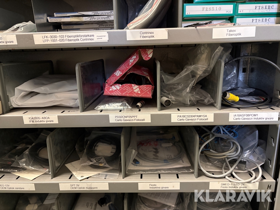 Lagerhylla med givare och optisk utrustning