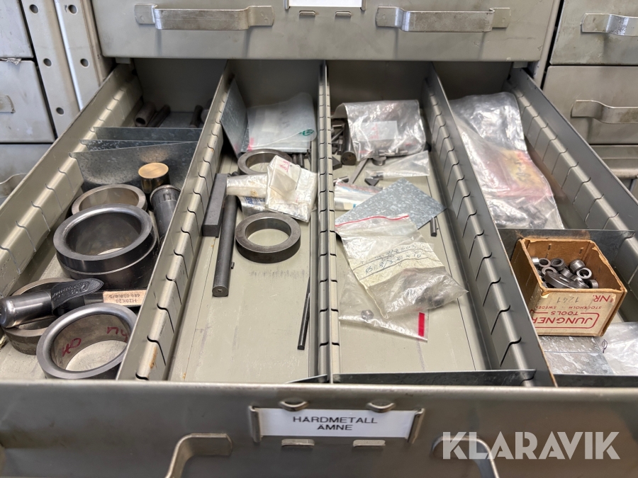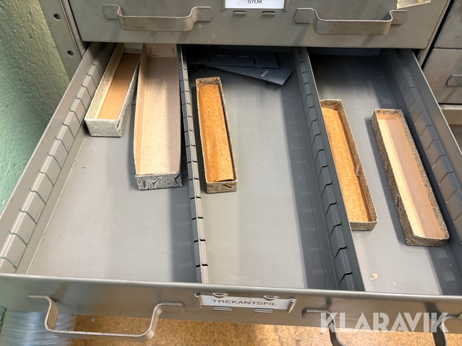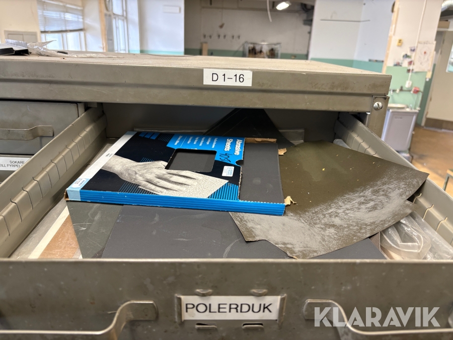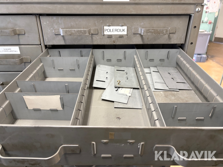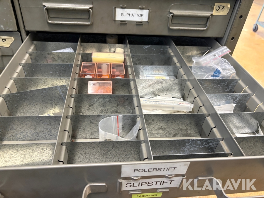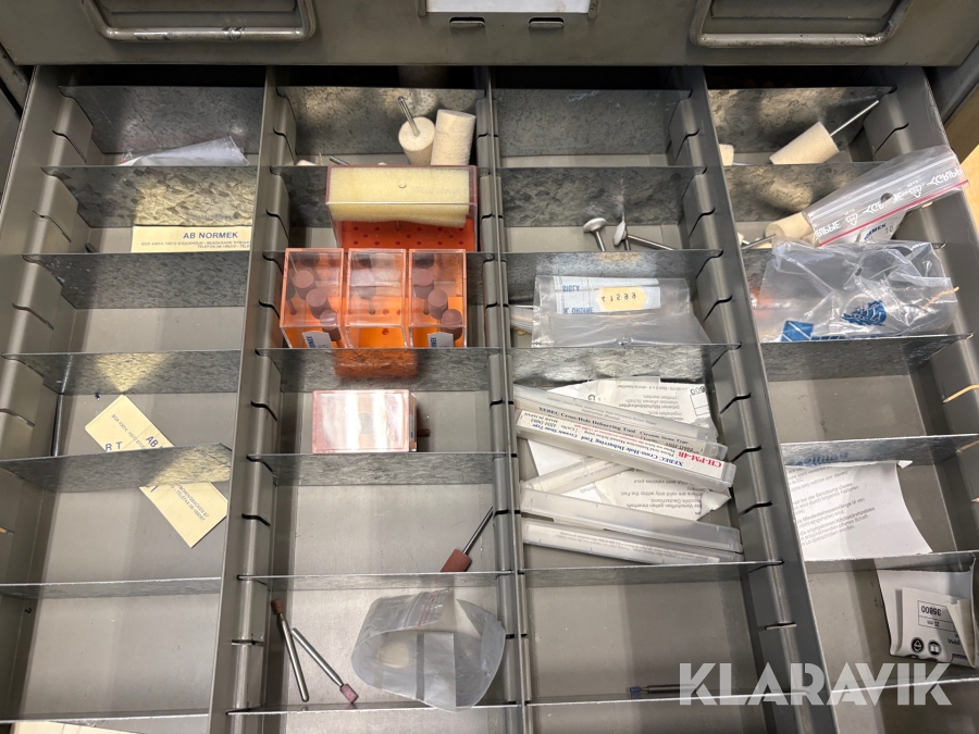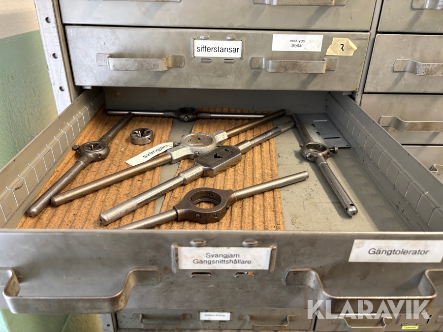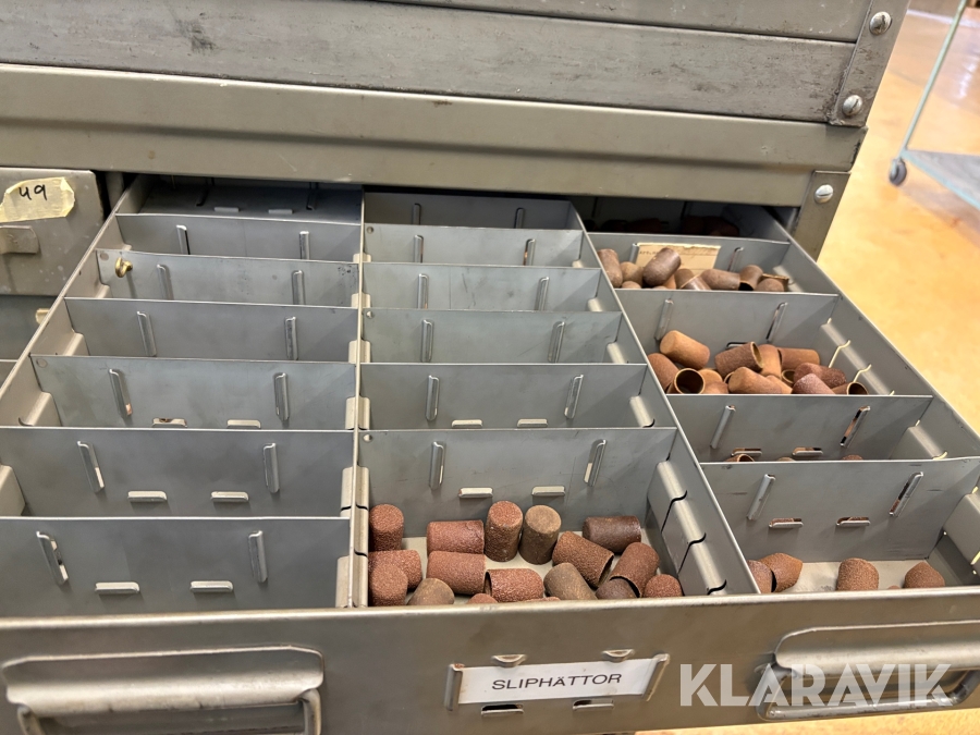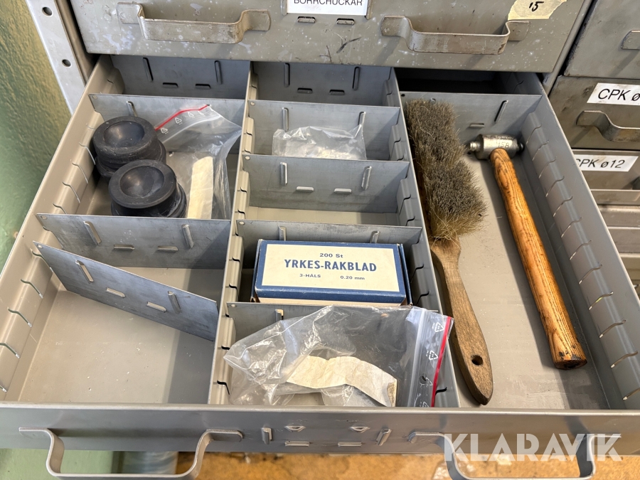 Plåtskåp med diverse utrustning för verktygsbearbetning
