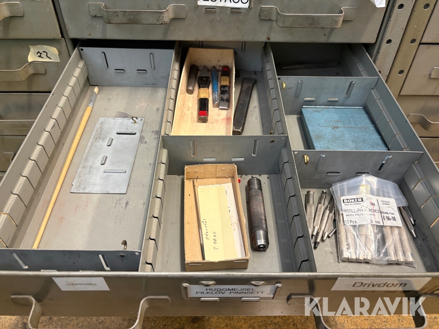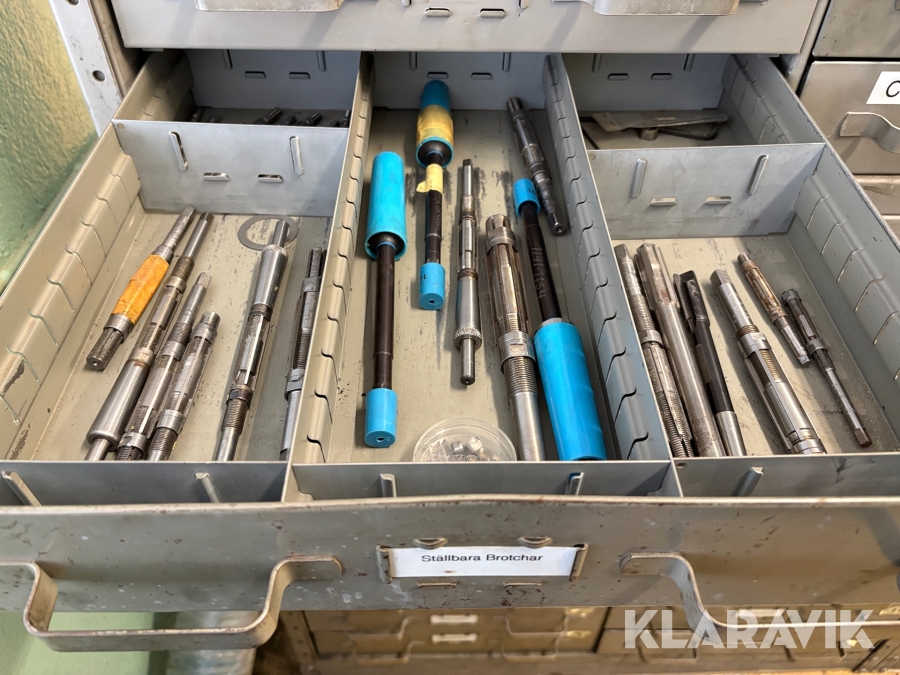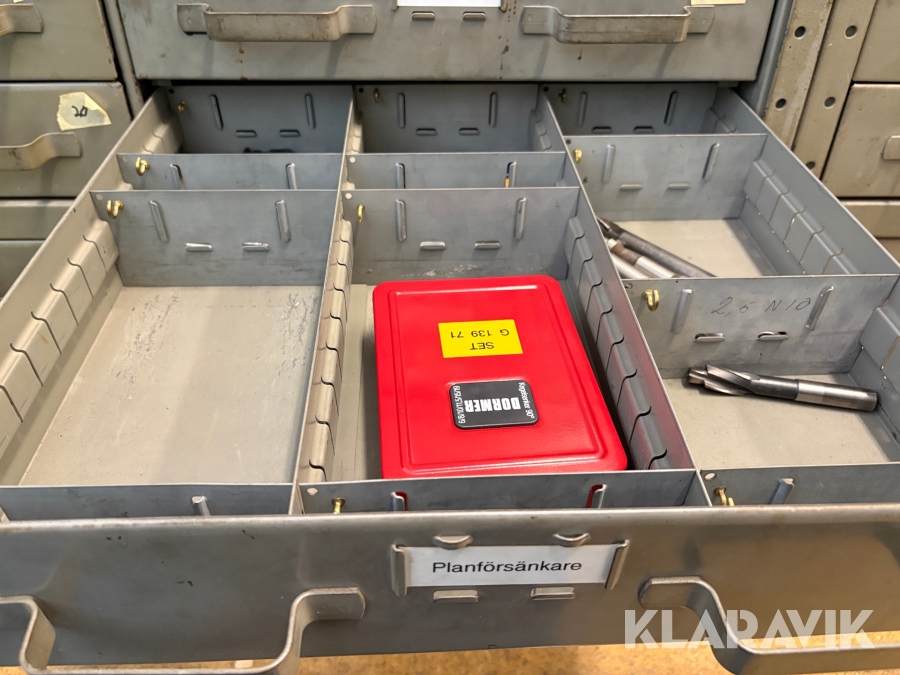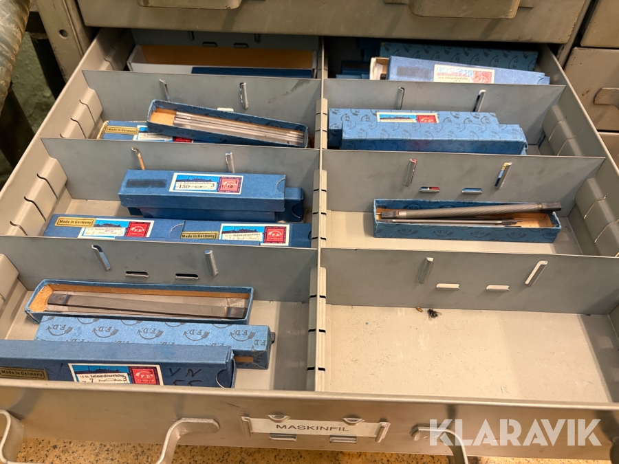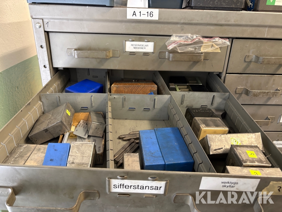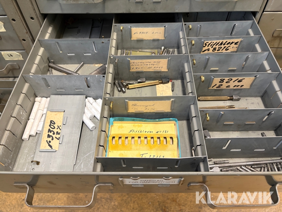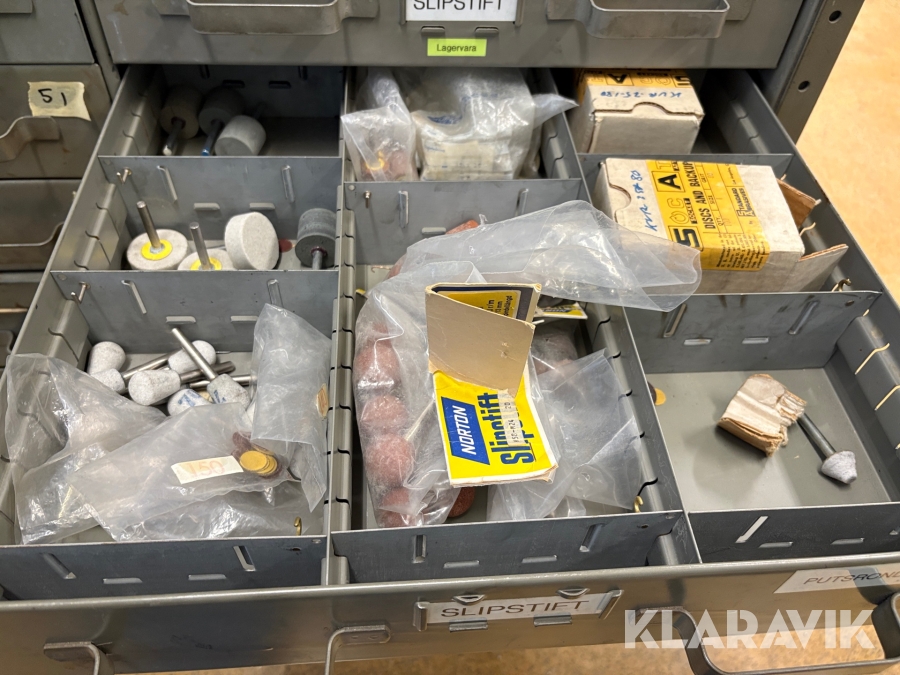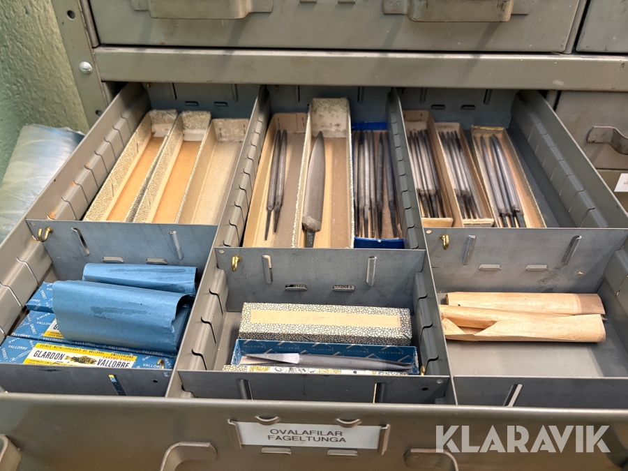 Plåtskåp med diverse utrustning för verktygsbearbetning